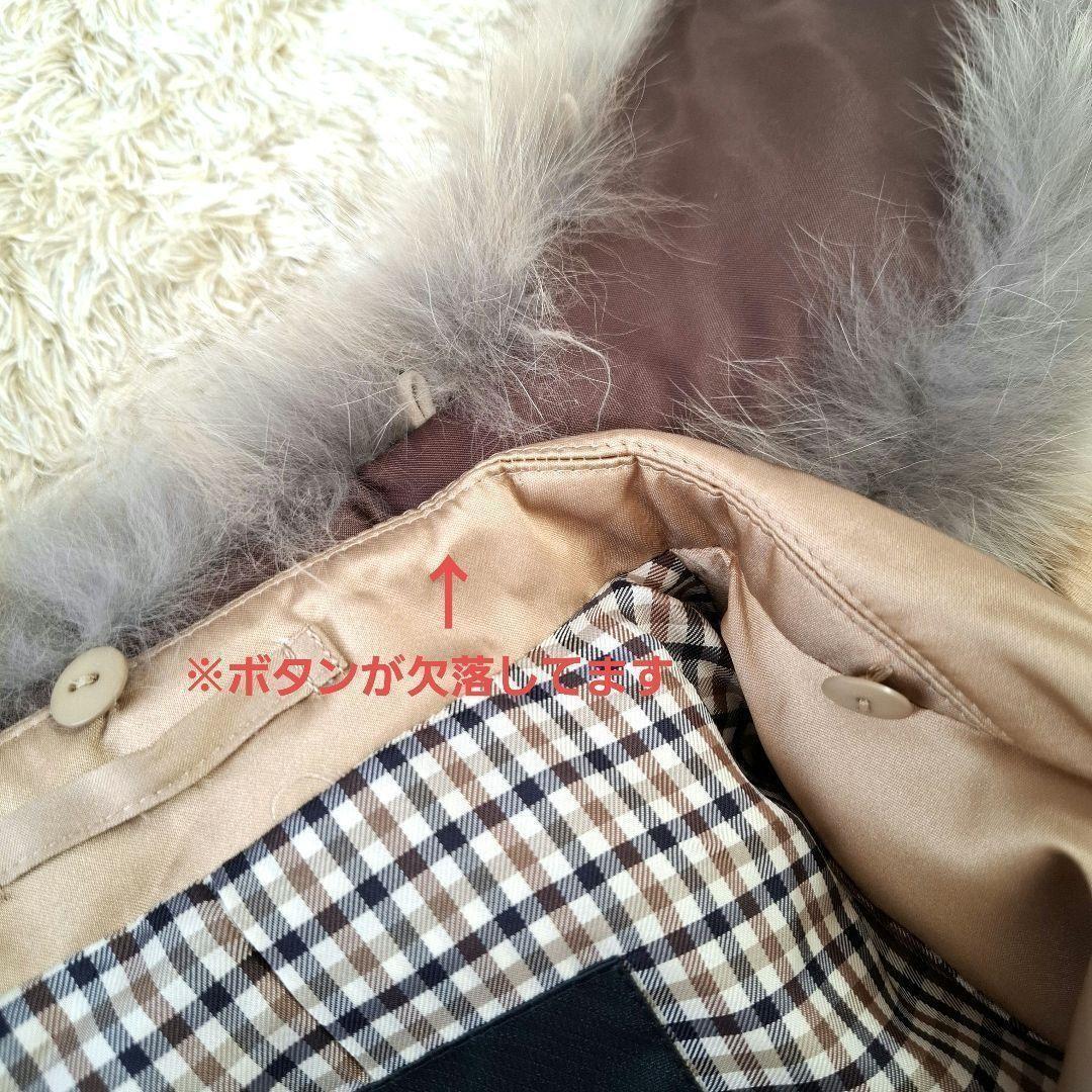 One of the buttons for attaching the fur has come off and is missing. Please see image 14. The adjacent button is also loose.