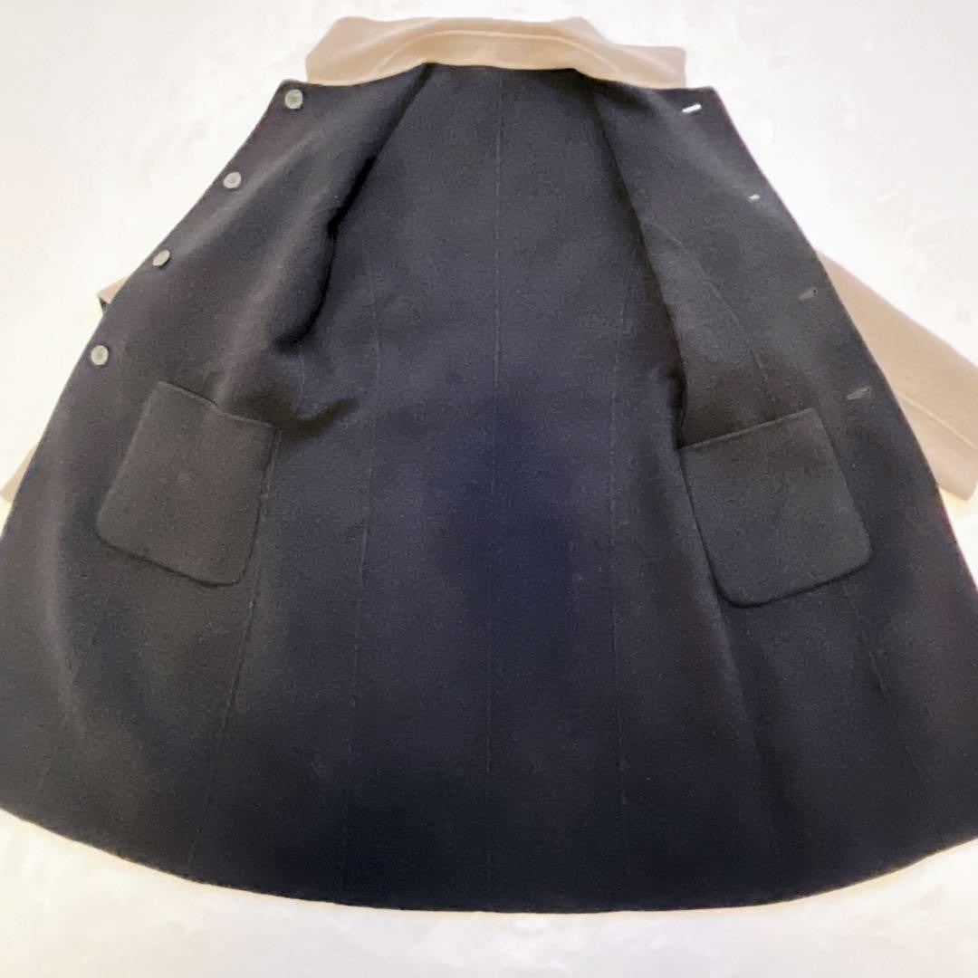 It is reversible between black and beige, allowing you to wear it to suit any mood or occasion.