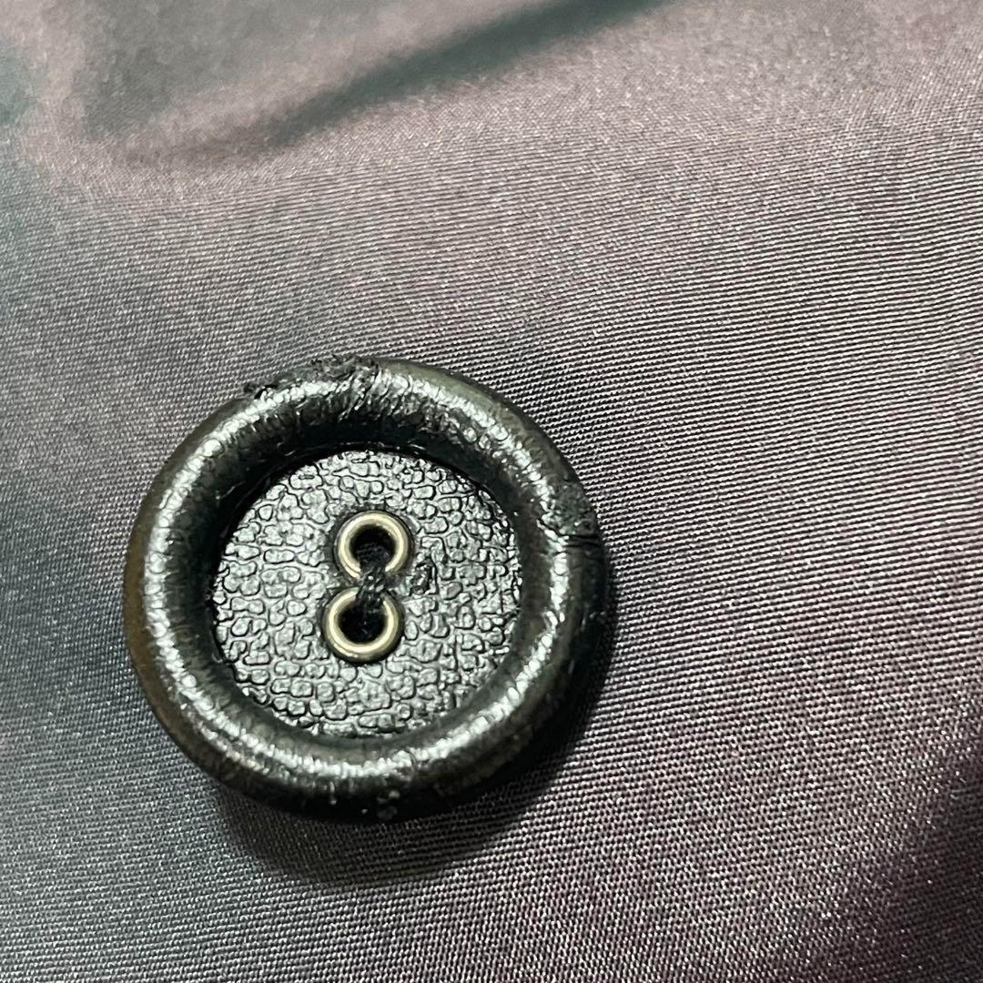 The thread on the second-top button is loose, and there is some wear on the piping and buttons, but this does not interfere with wear and should still be comfortable to wear.