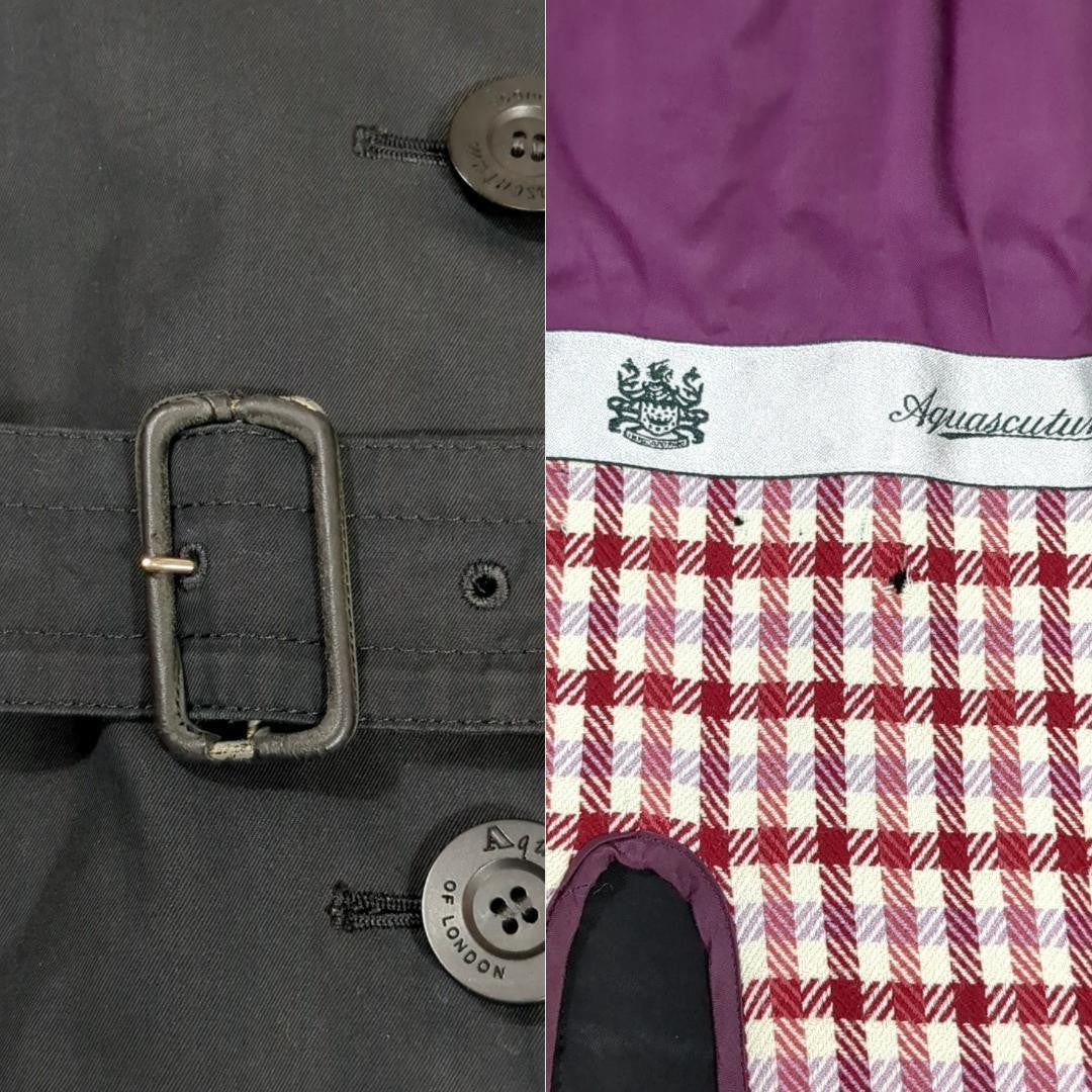 Aquascutum Trench Coat Club Check Asian fit L US size M Black Authentic