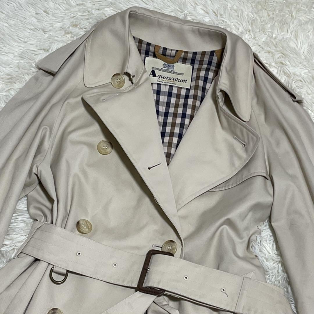 Aquascutum Trench Coat Club Check FREE SIZE Beige Authentic