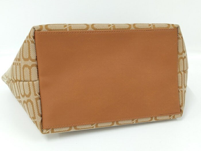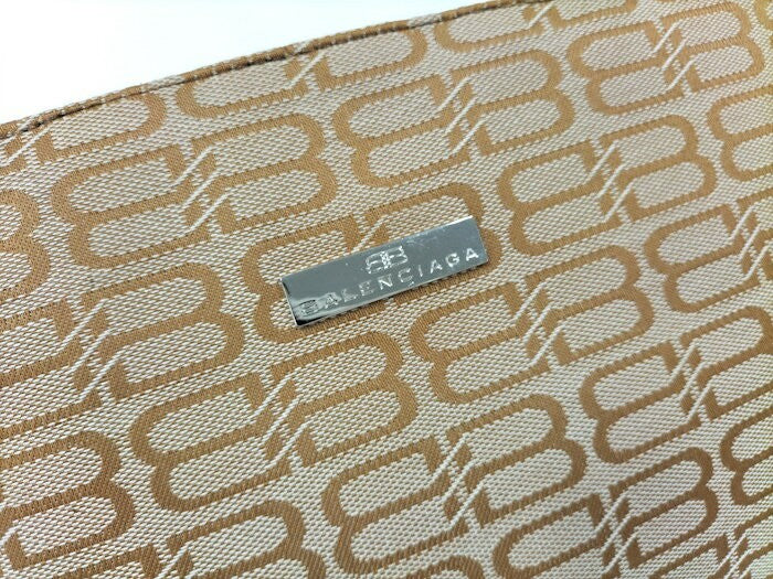 BALENCIAGA Hand Bag Tote Purse BB Canvas Leather Brown Beige Authentic