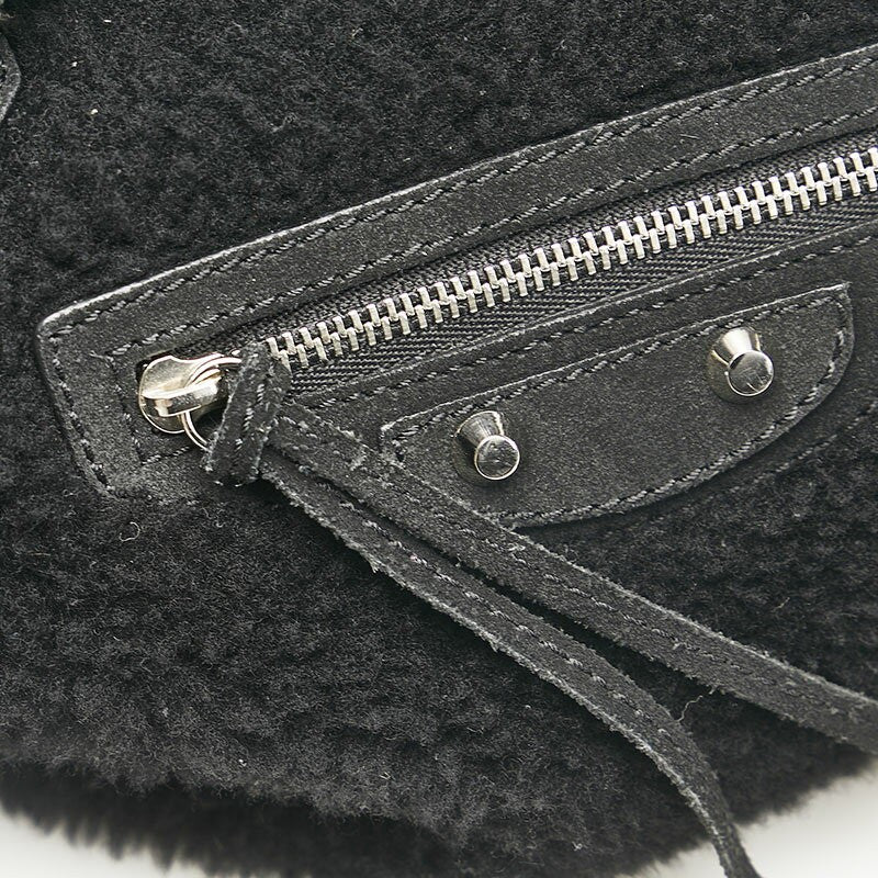 BALENCIAGA Hand Bag Tote Purse Mouton Leather Black Authentic