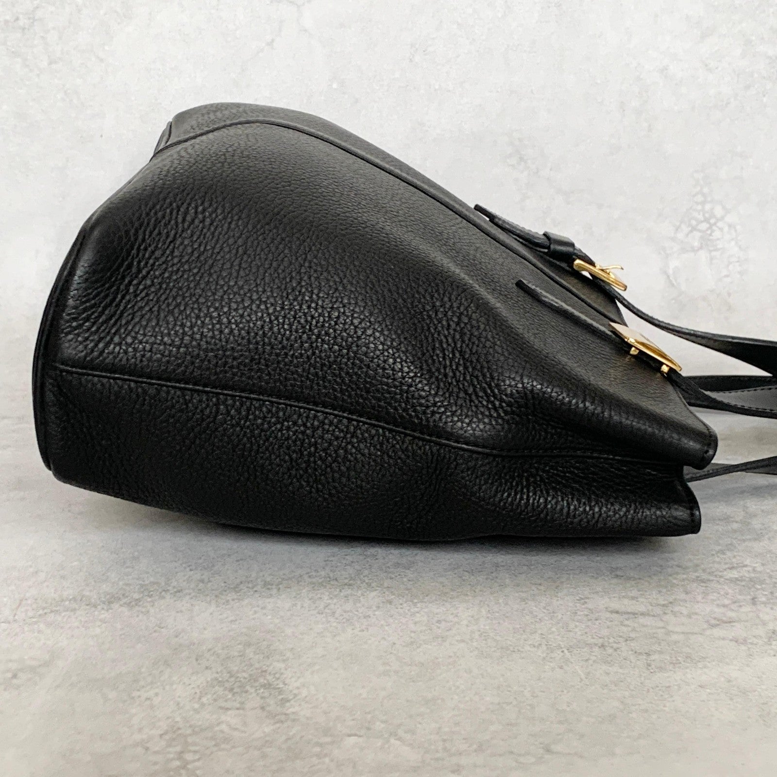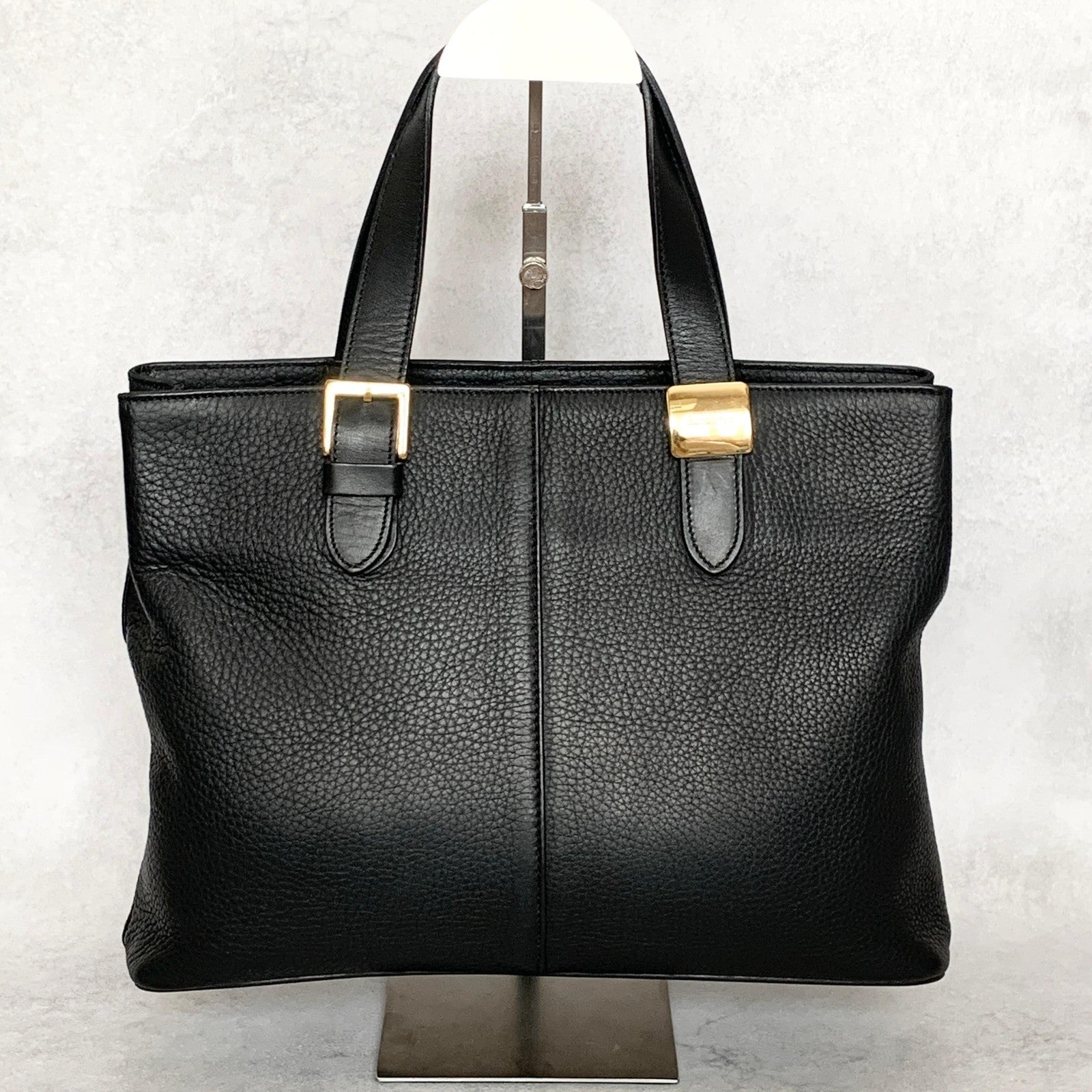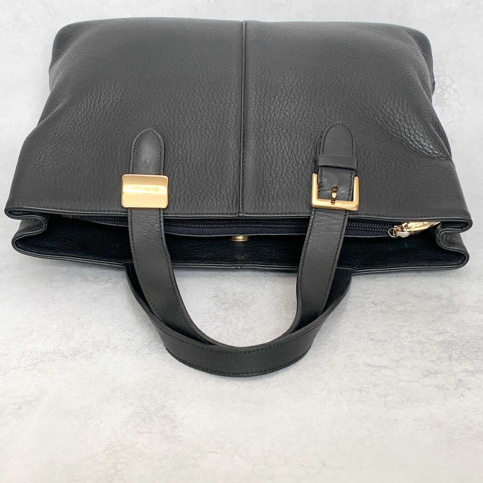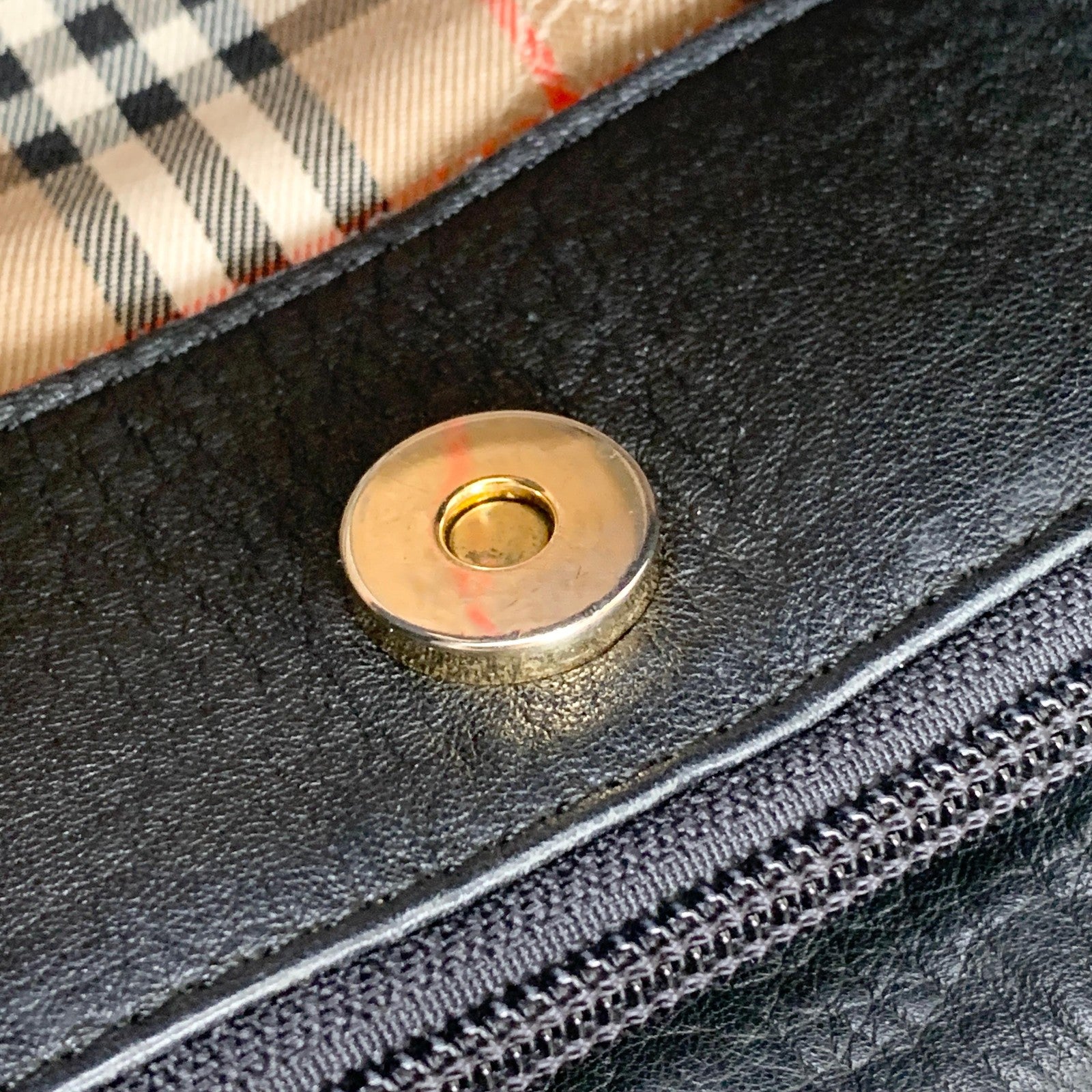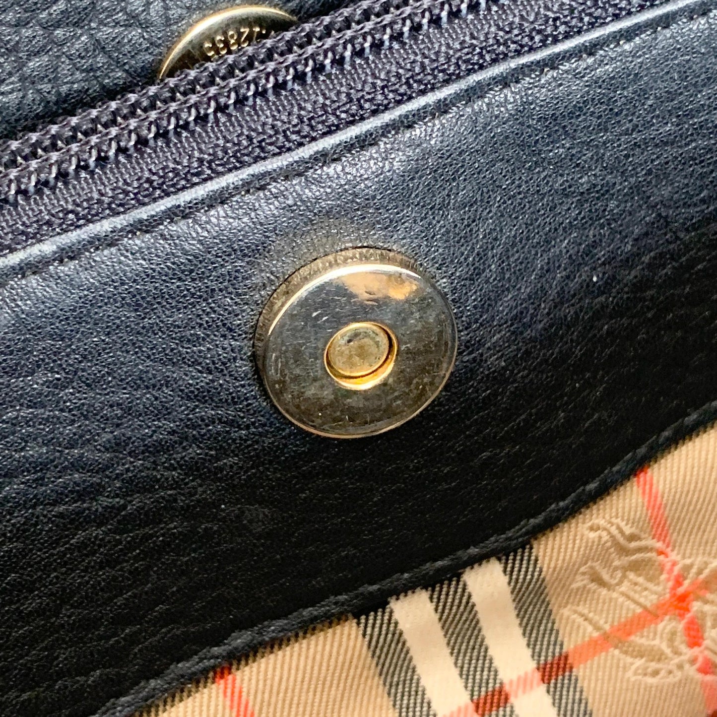 BURBERRY Bag Nova Check Hand Tote Purse Leather Black Gold Used Authentic