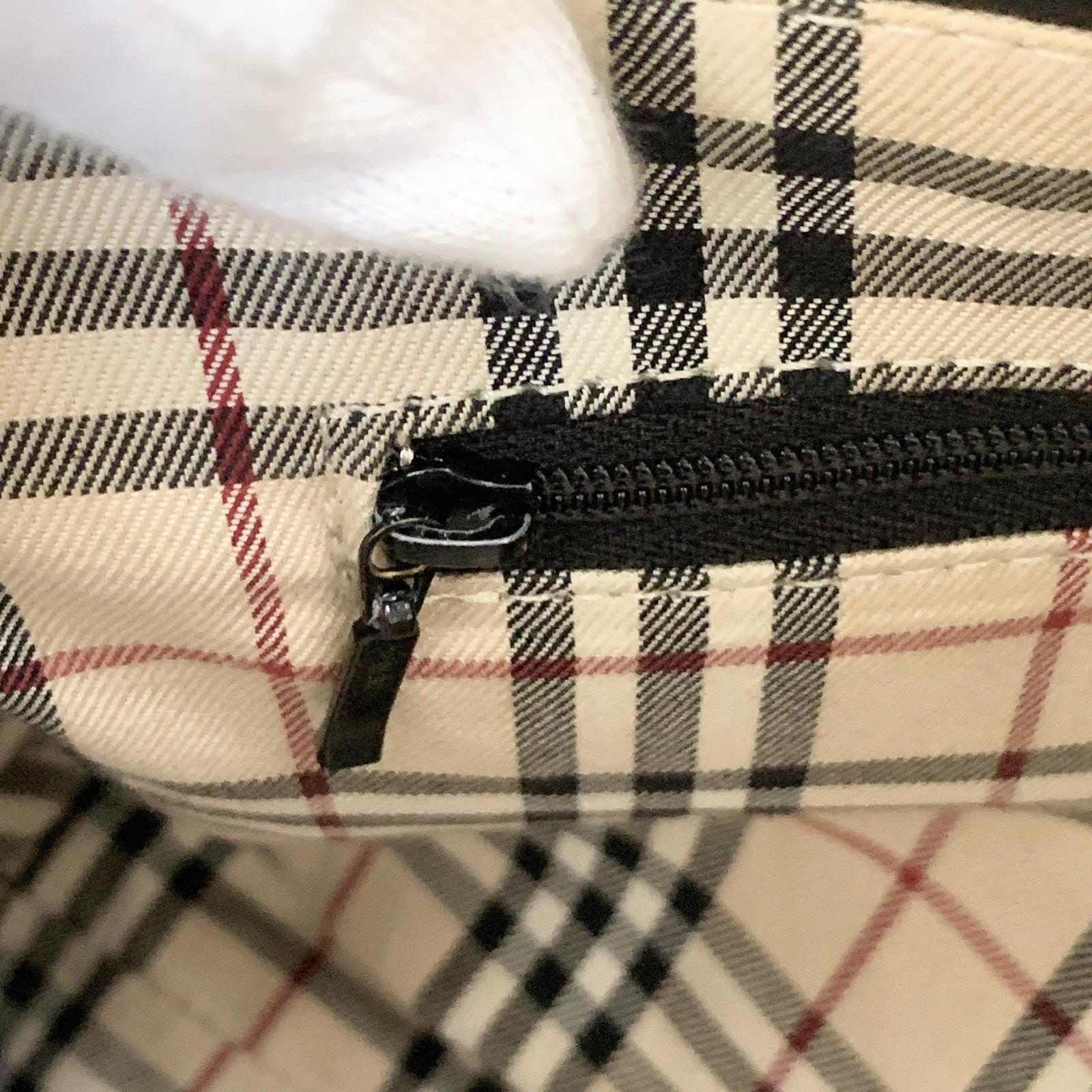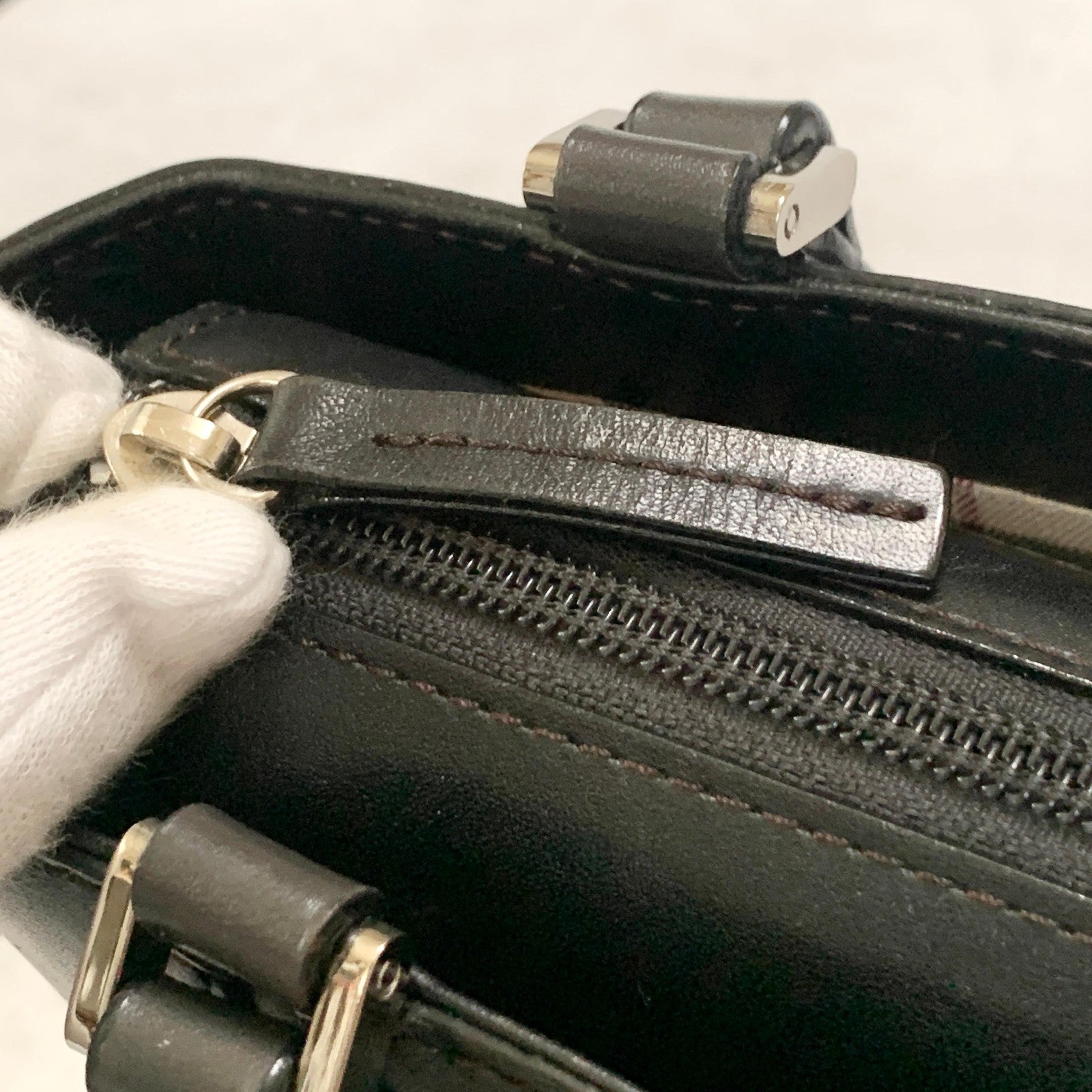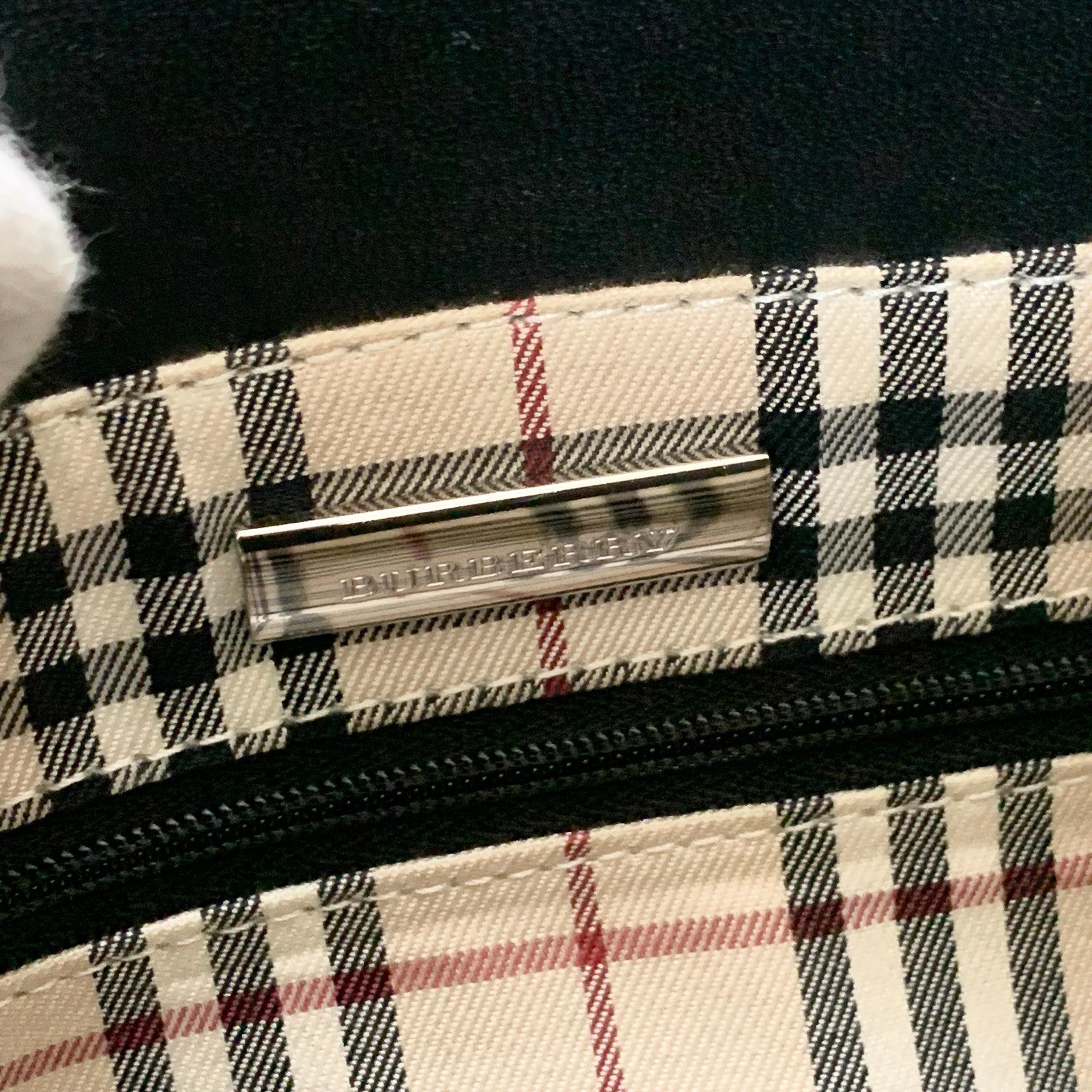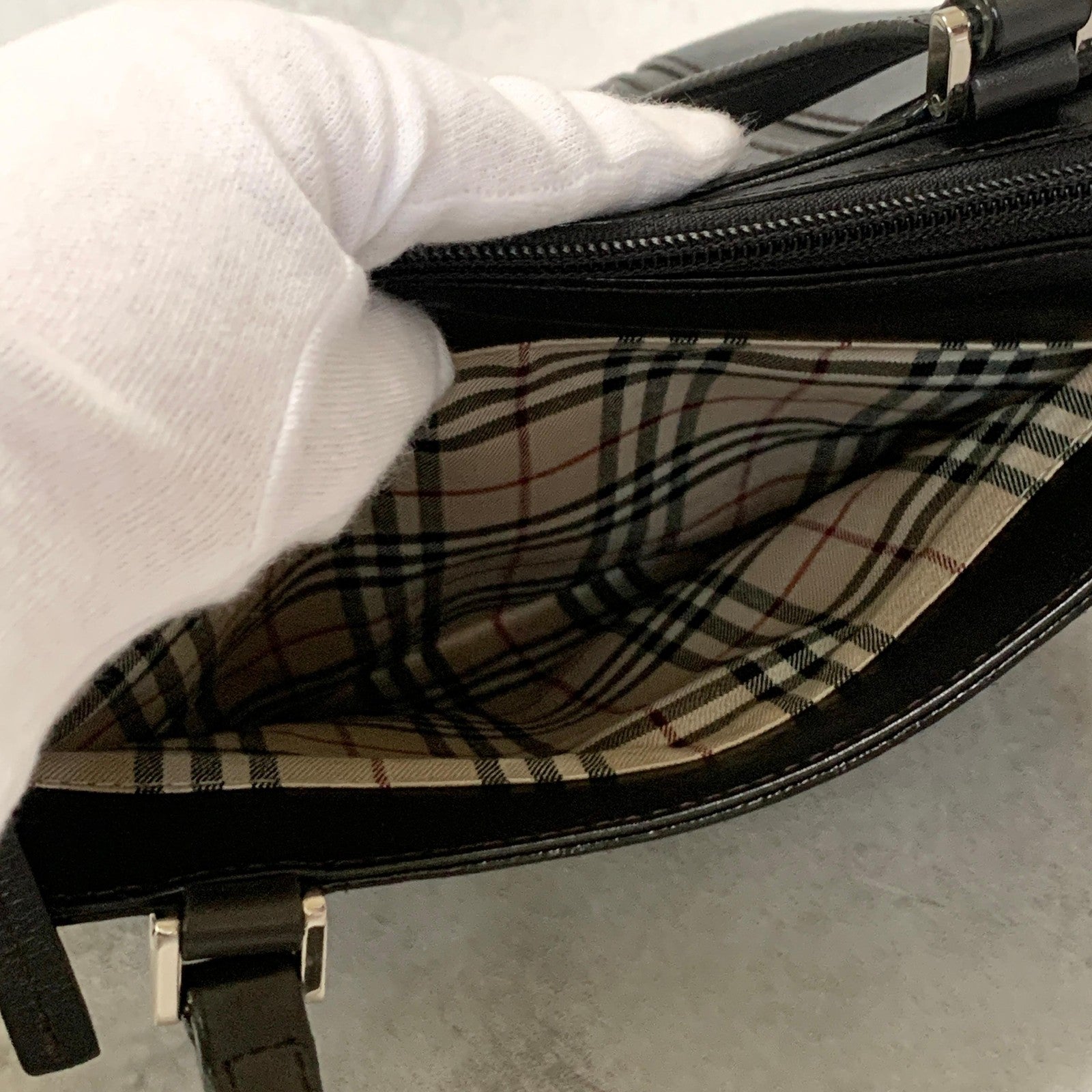 BURBERRY Bag Nova Check Logo Hand Tote Purse Leather Black Silver Authentic