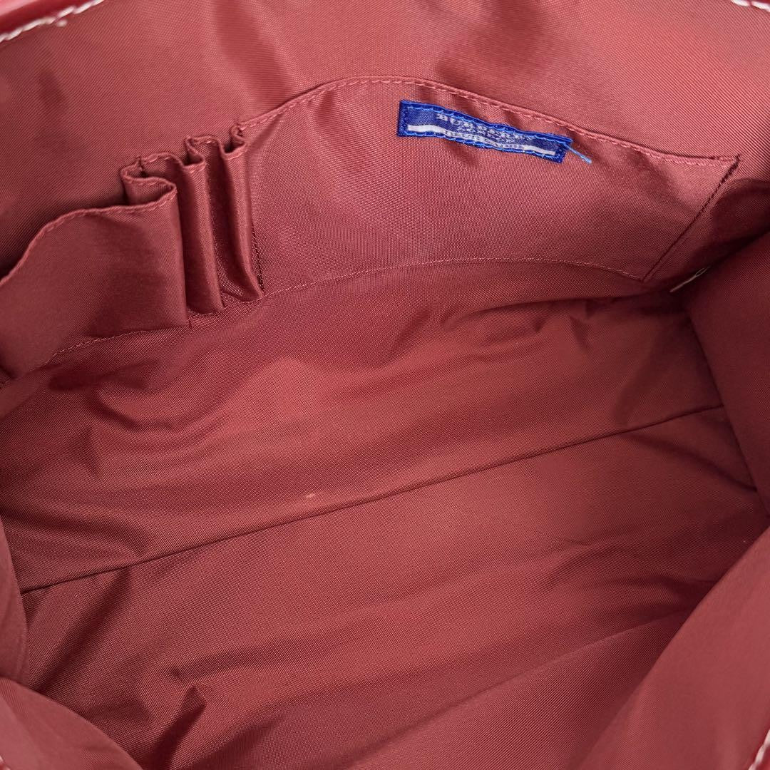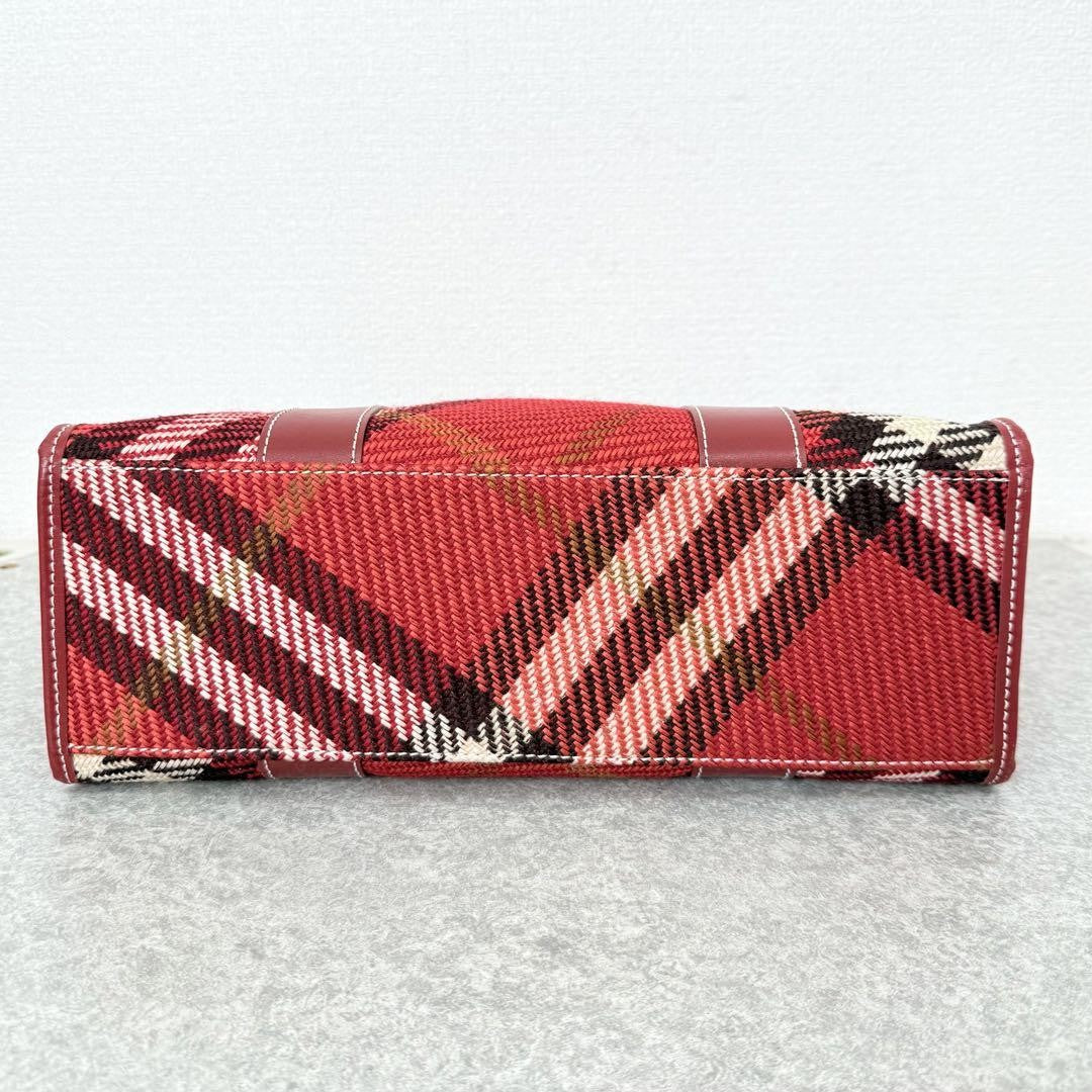 BURBERRY BLUE LABEL Hand Bag Tote Purse Nova Check Canvas Leather Red Authentic