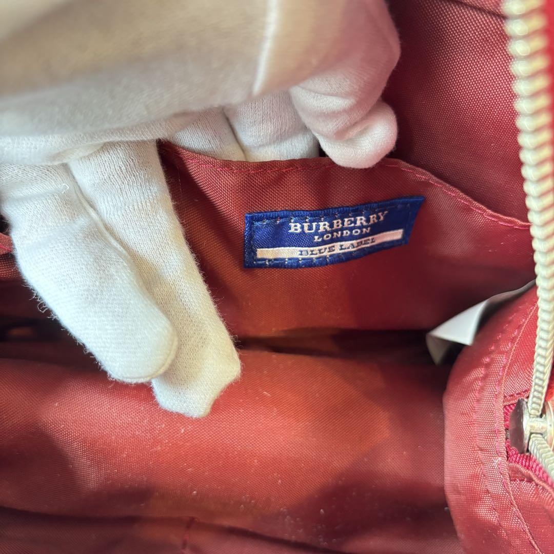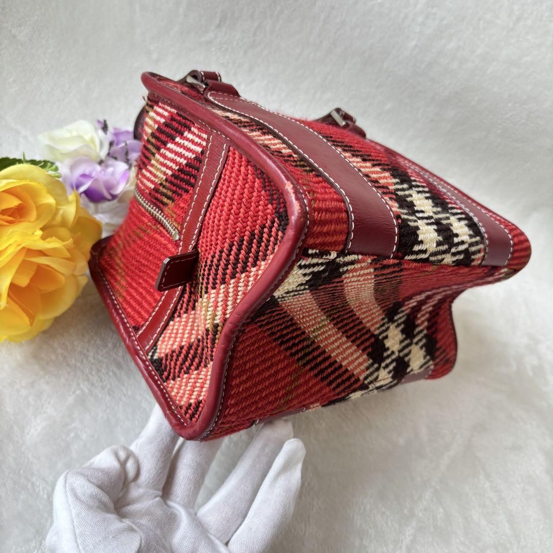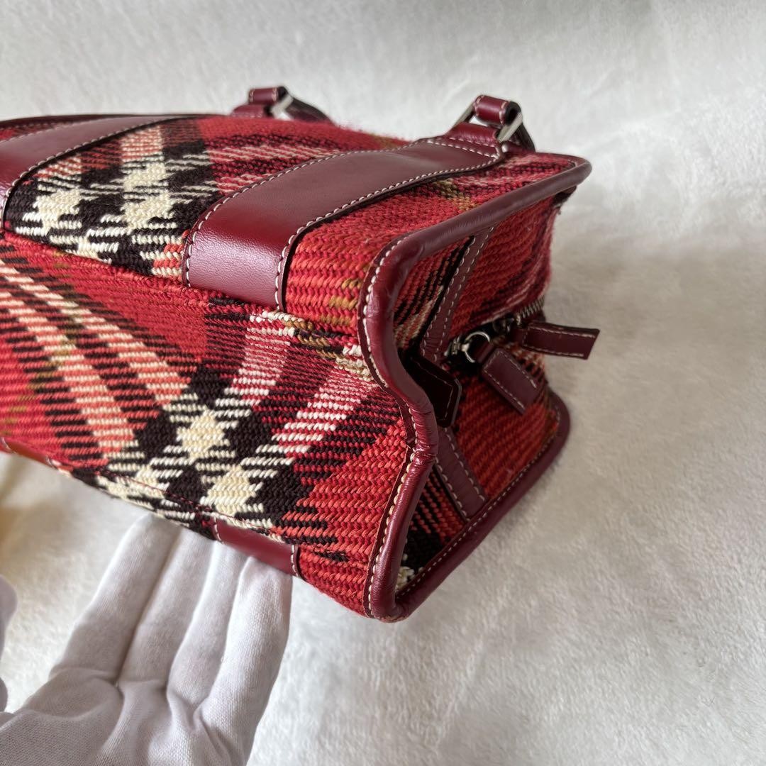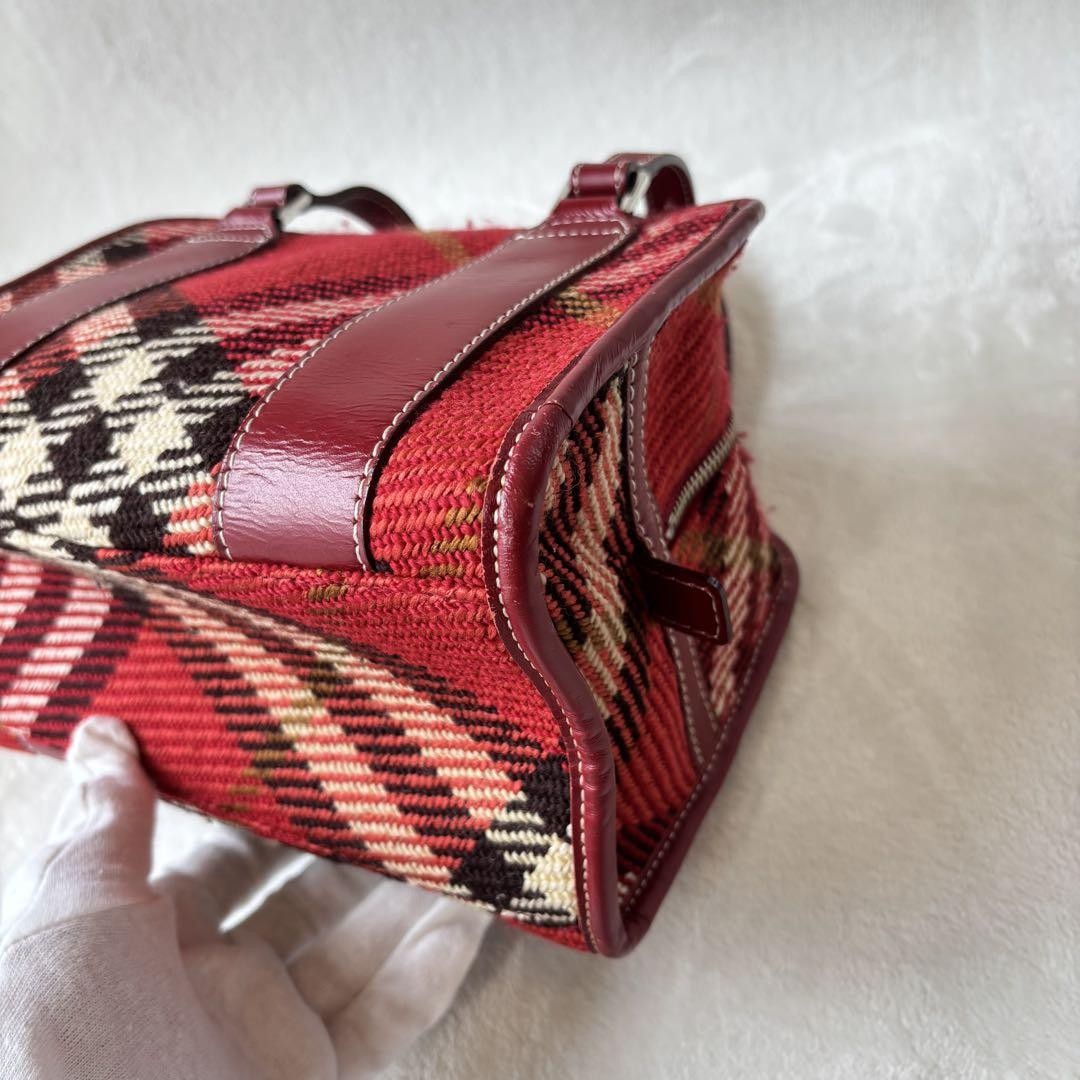 BURBERRY BLUE LABEL Hand Bag Tote Purse Nova Check Canvas Leather Red Authentic