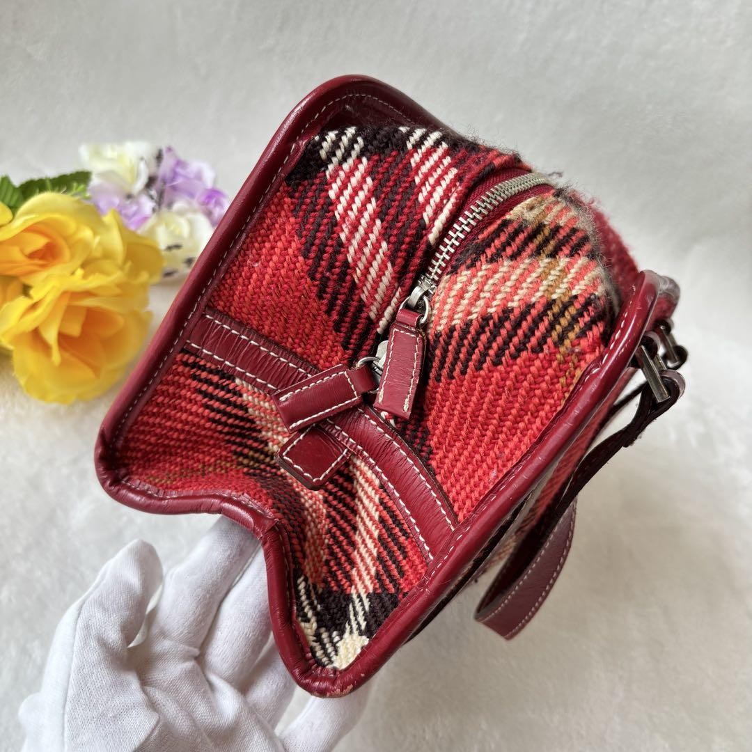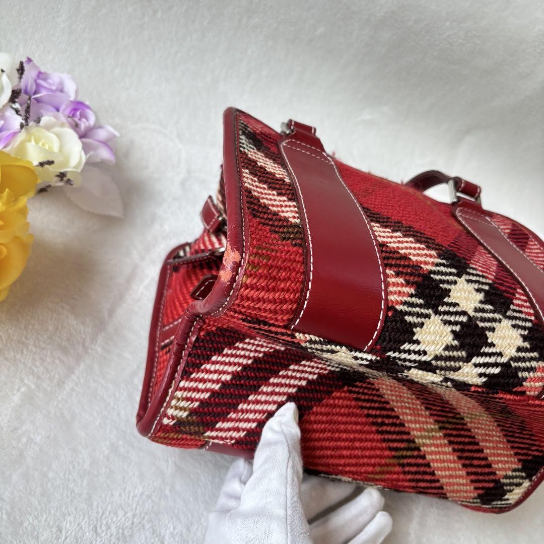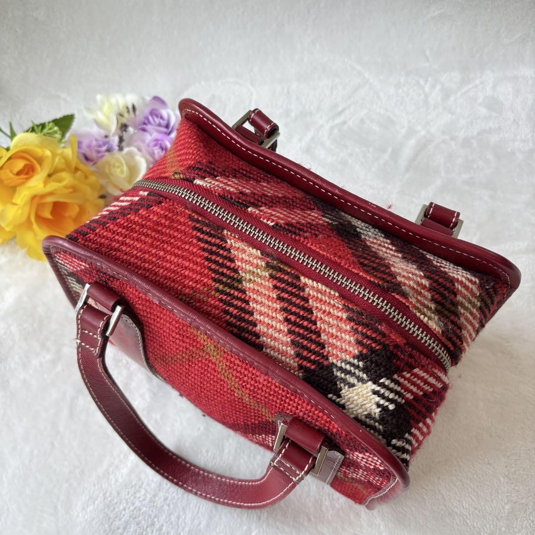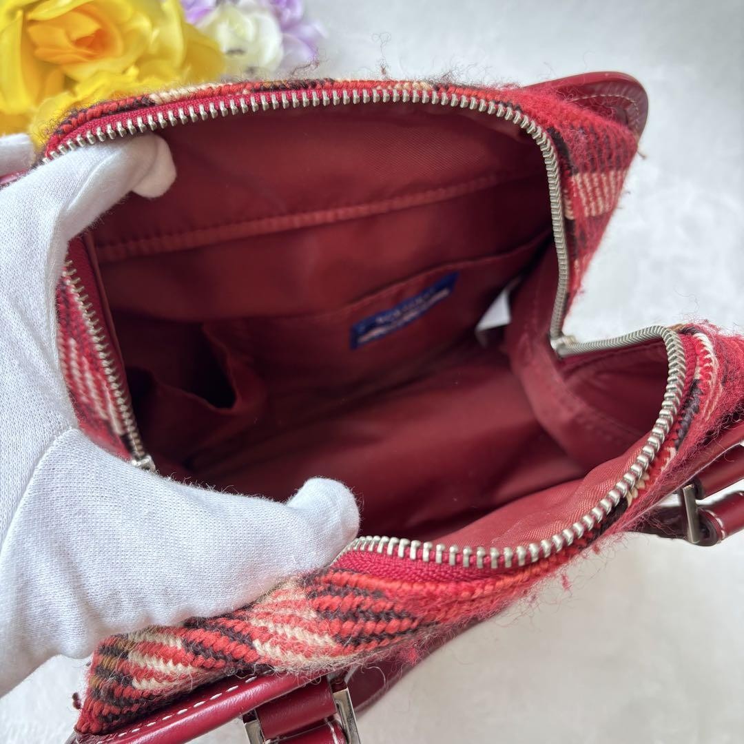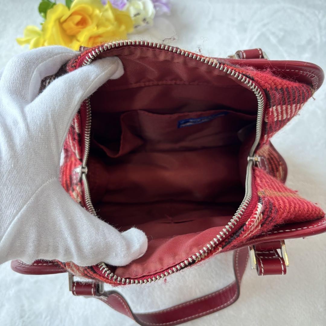 BURBERRY BLUE LABEL Hand Bag Tote Purse Nova Check Canvas Leather Red Authentic