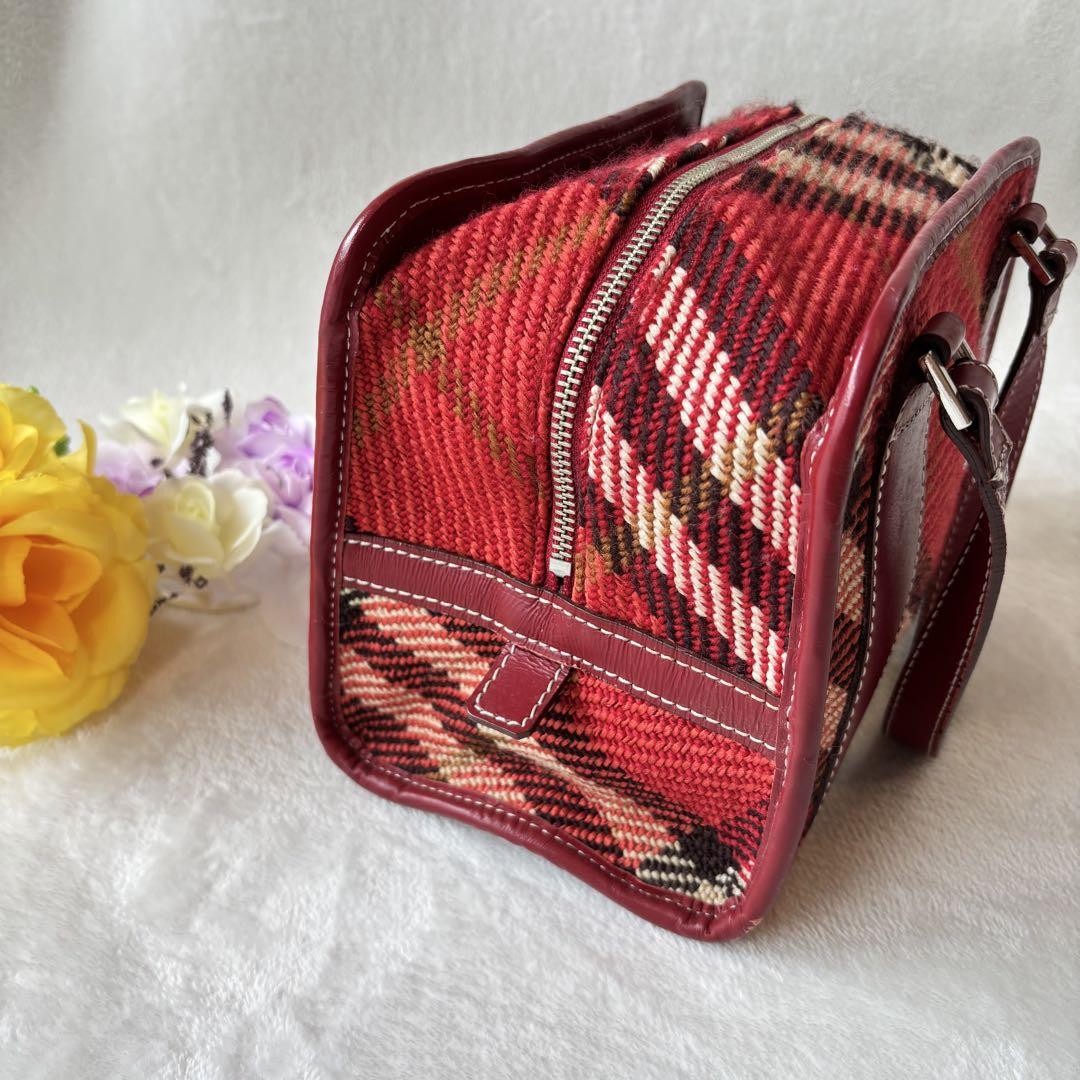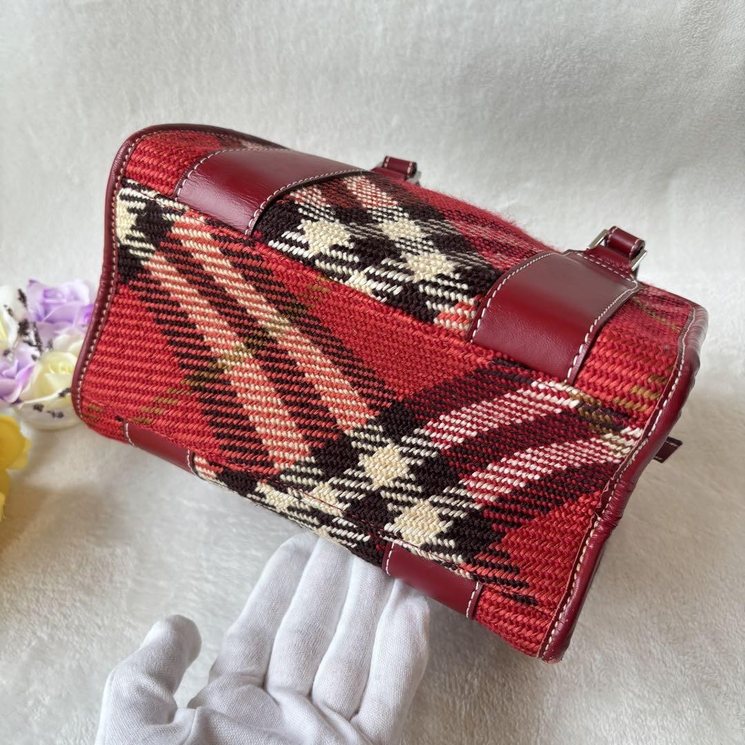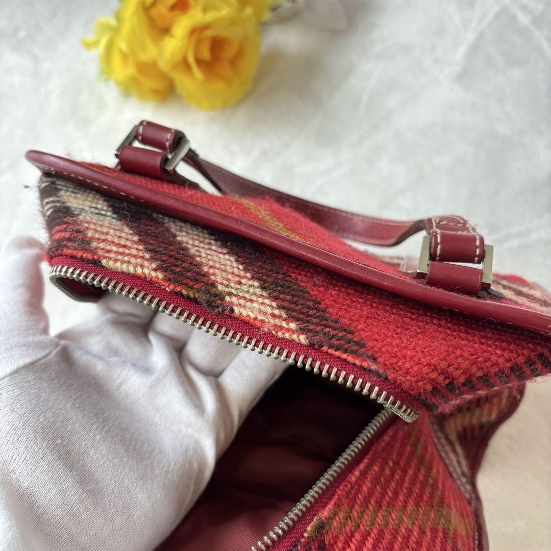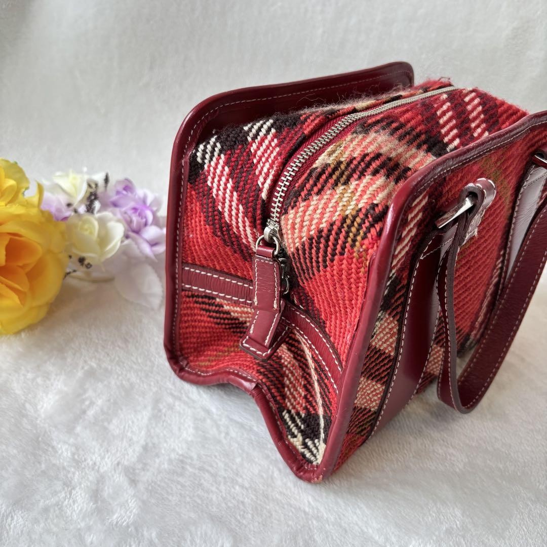 BURBERRY BLUE LABEL Hand Bag Tote Purse Nova Check Canvas Leather Red Authentic