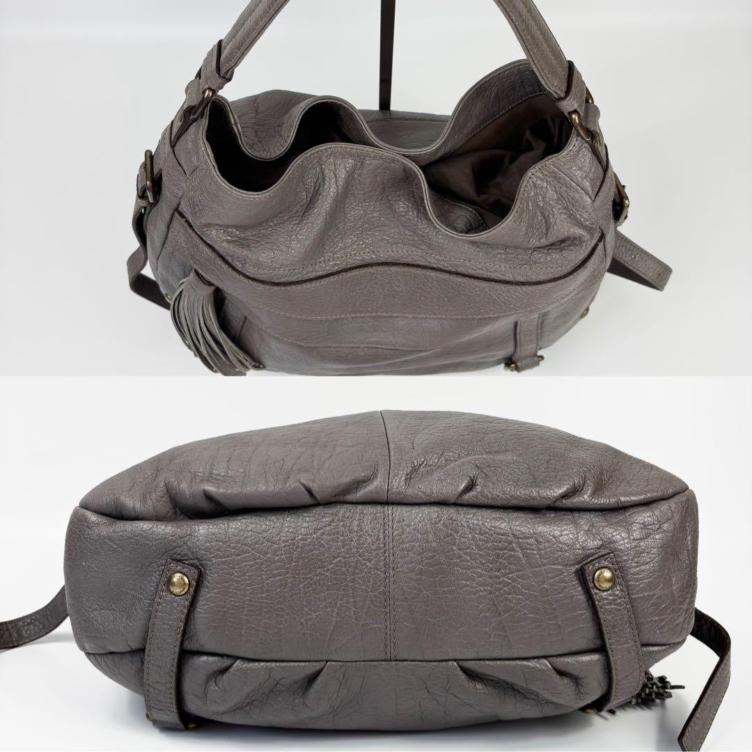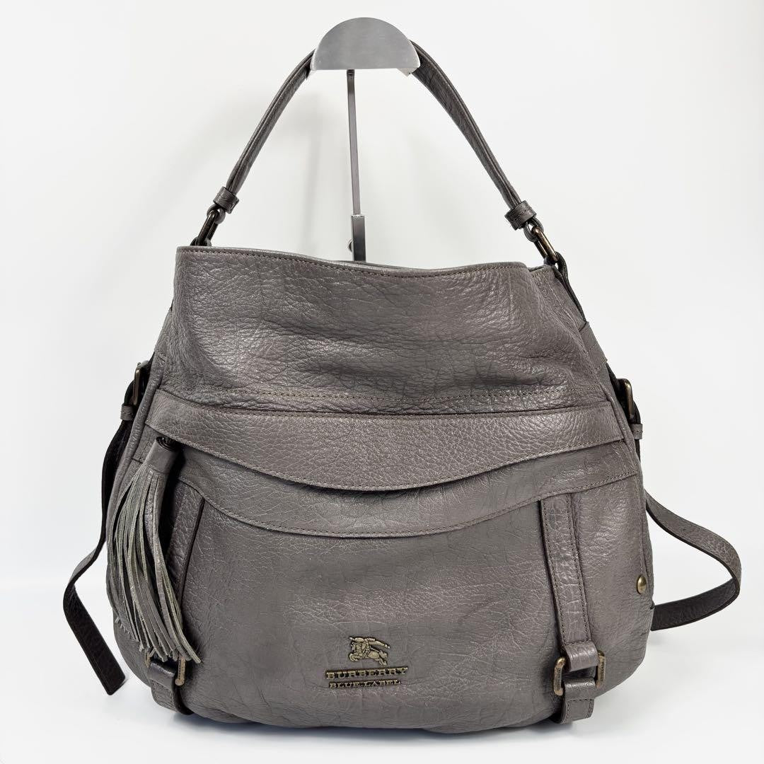 BURBERRY BLUE LABEL Shoulder Bag Purse Leather Greige Authentic