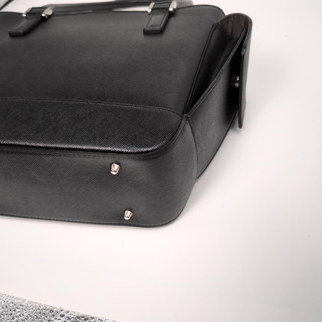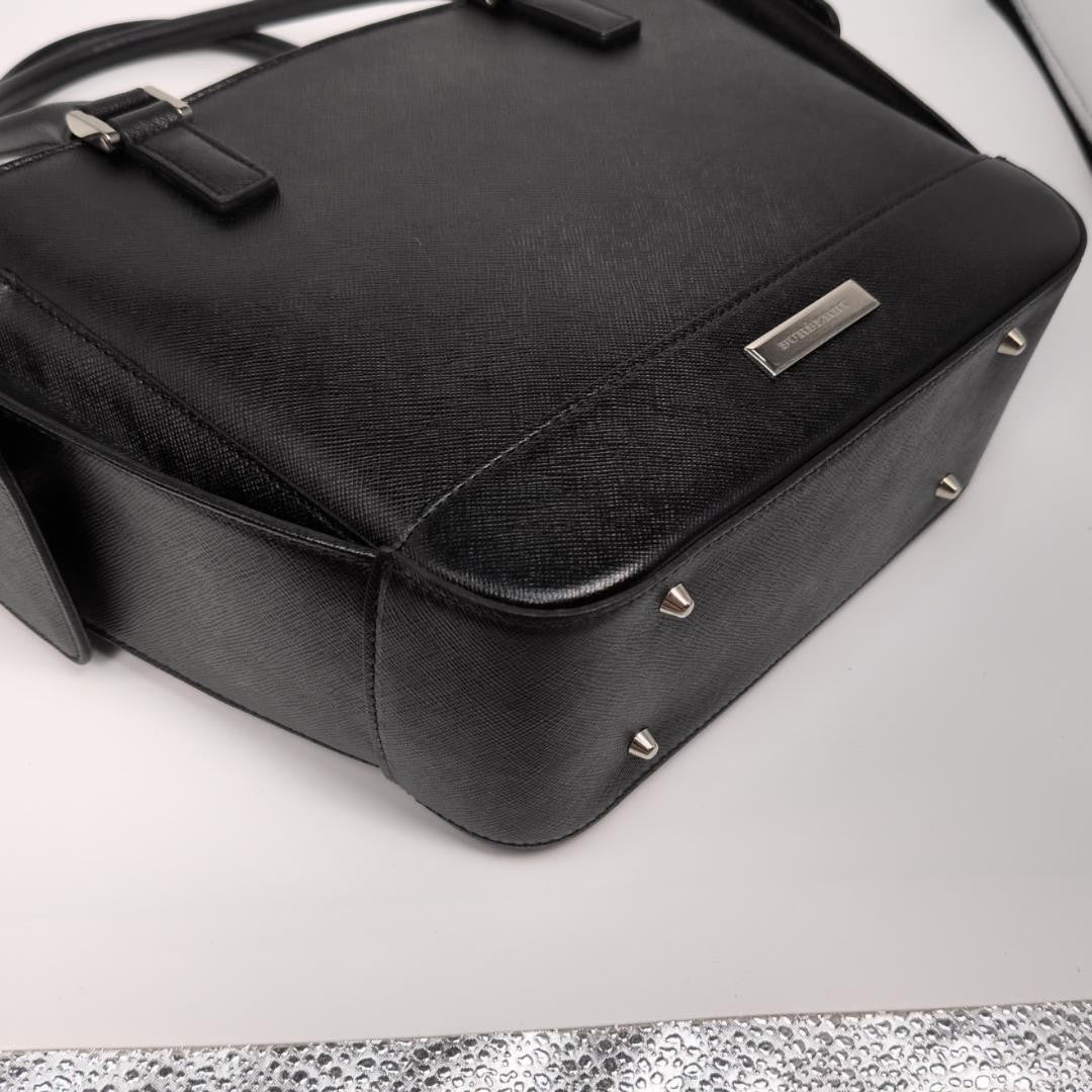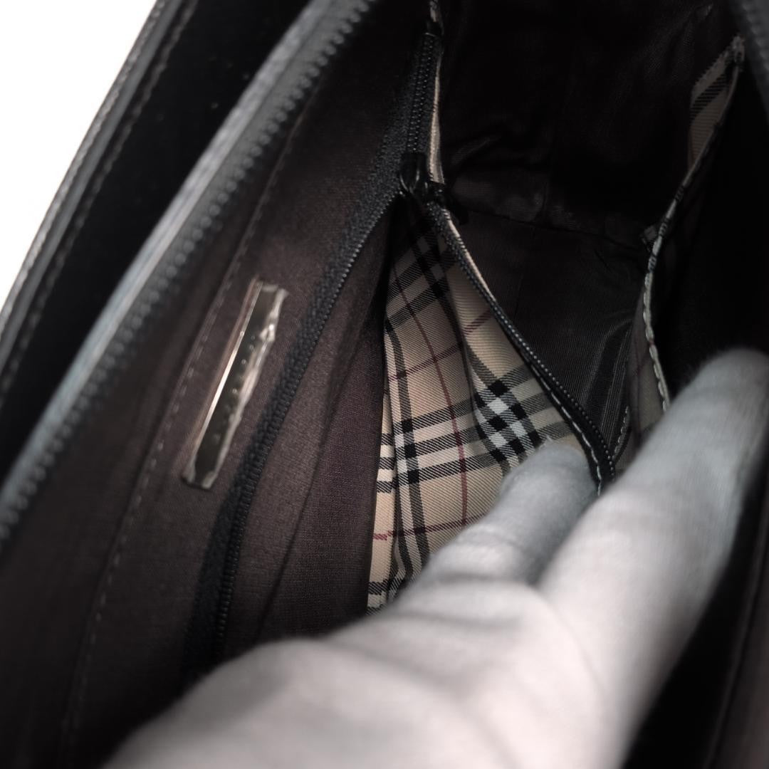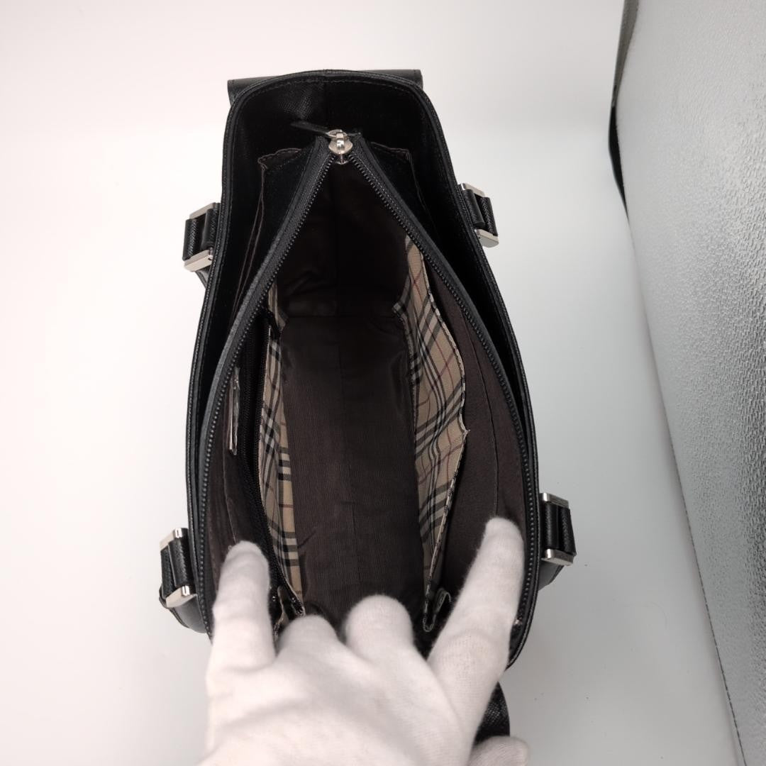 BURBERRY Hand Bag Tote Purse Nova Check Leather Black Authentic