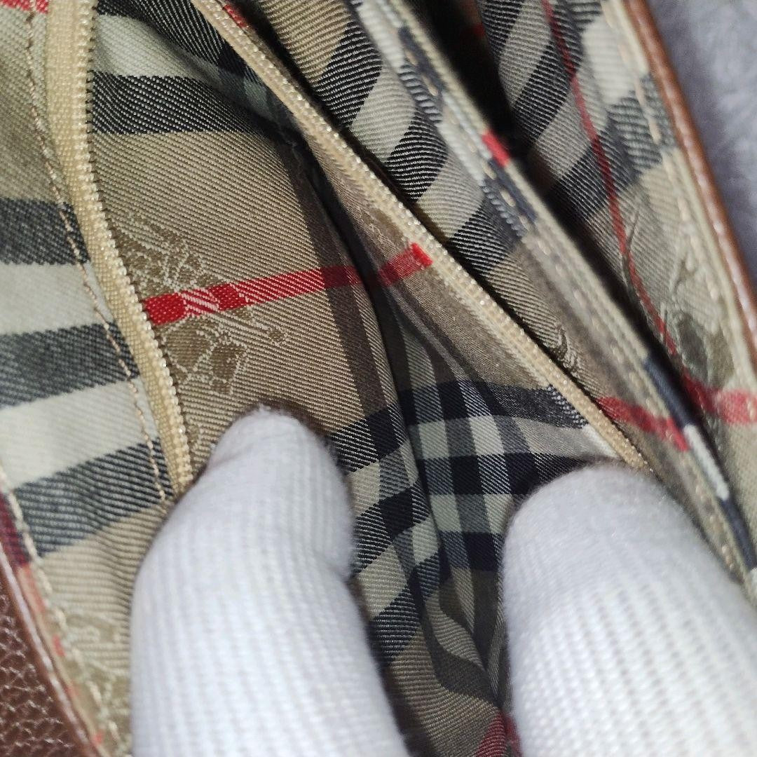 BURBERRY Hand Shoulder Bag Tote Purse 2way Nova Check Leather Brown Authentic