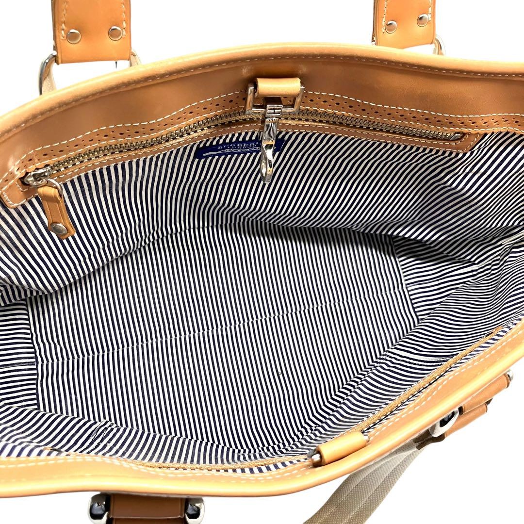 BURBERRY LONDON Hand Bag Tote Purse Canvas Leather Beige Authentic