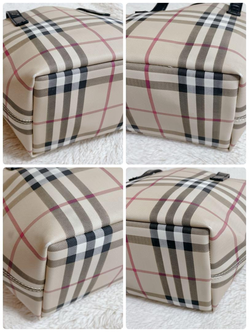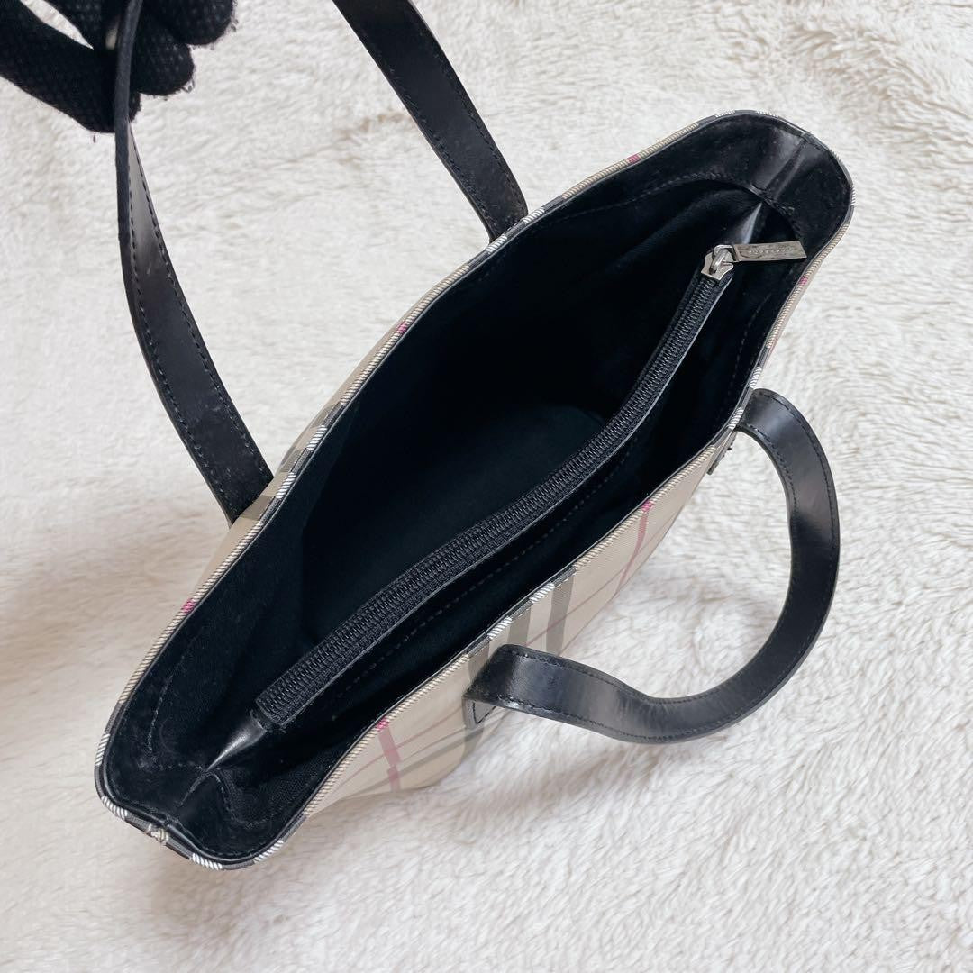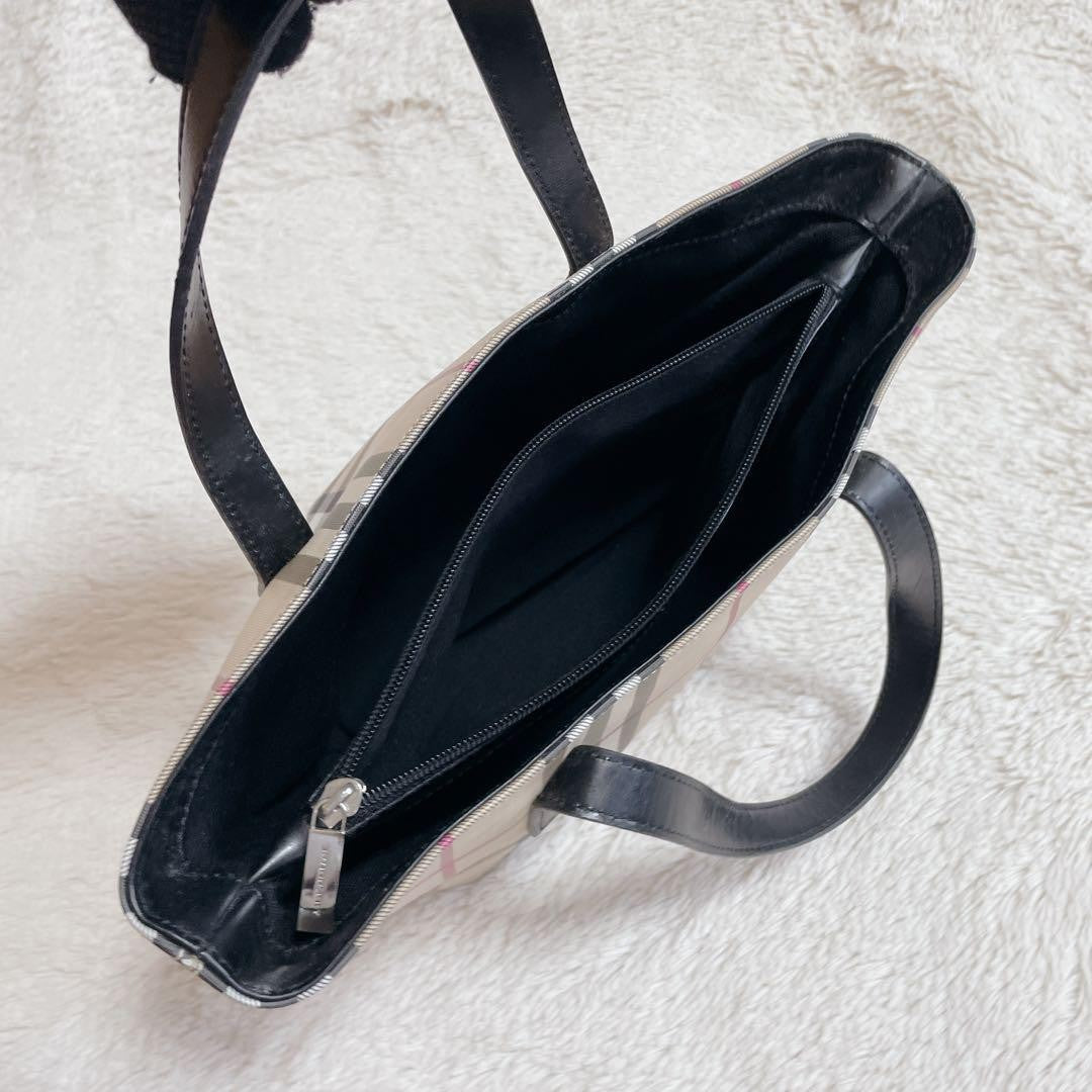 BURBERRY LONDON Hand Bag Tote Purse Nova Check PVC Leather Beige Black Authentic