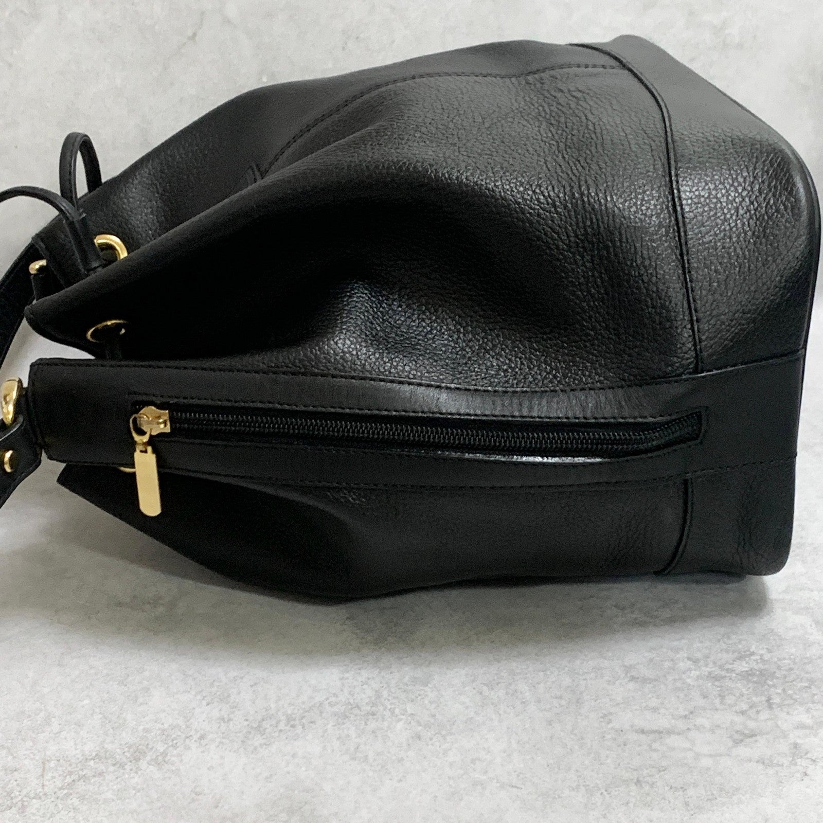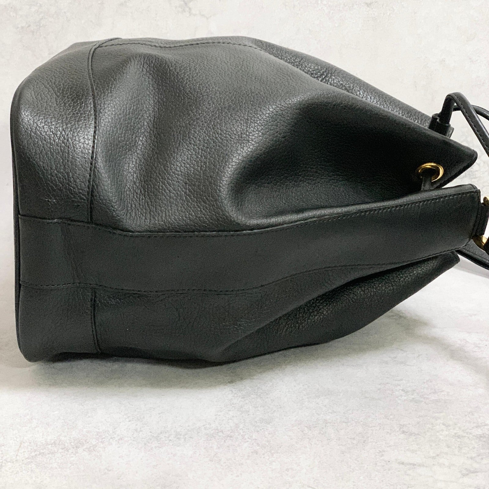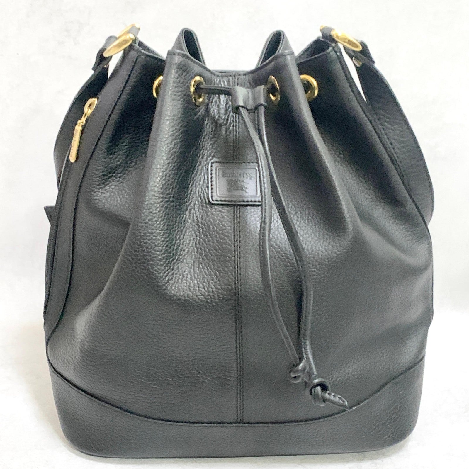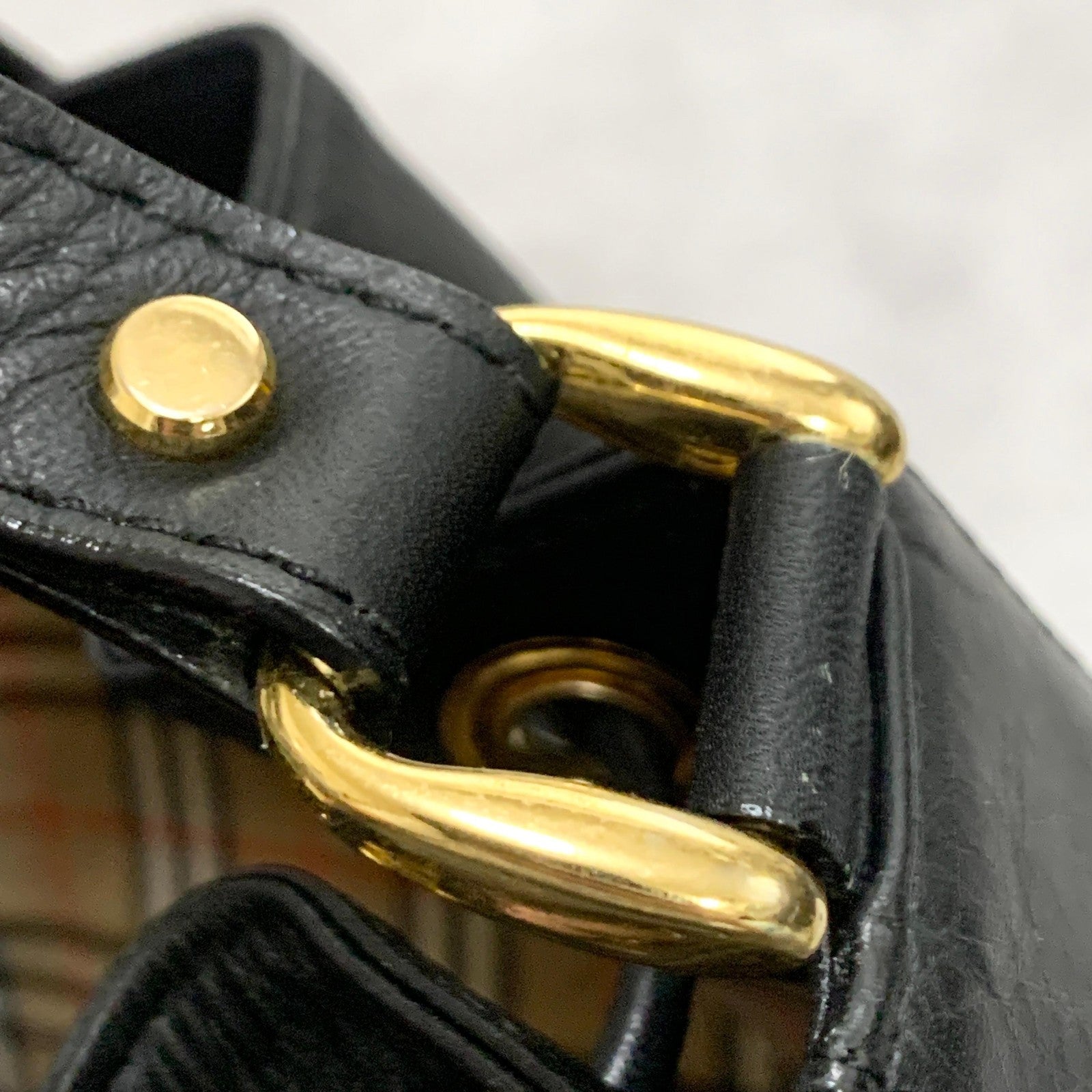 BURBERRY Shoulder Bag Purse Horse Logo Leather Black Gold Unisex Used Authentic