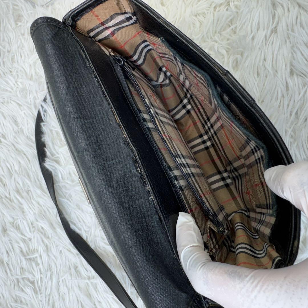 BURBERRY Shoulder Bag Purse Nova Check Leather Black Authentic