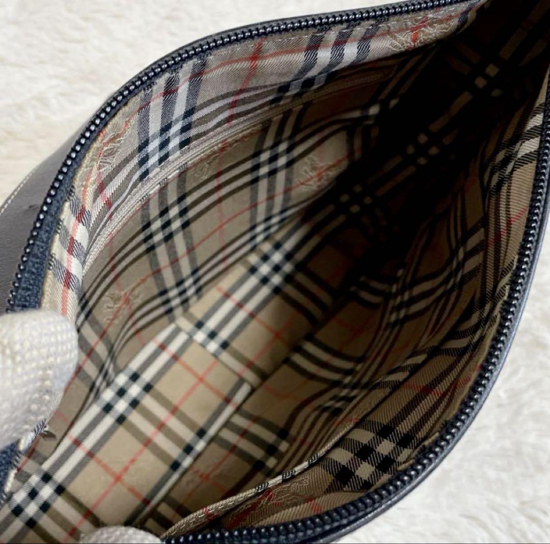 BURBERRY Shoulder Bag Purse Nova Check Leather Black Authentic