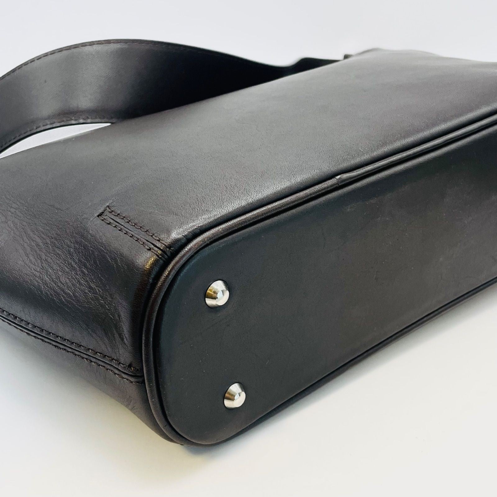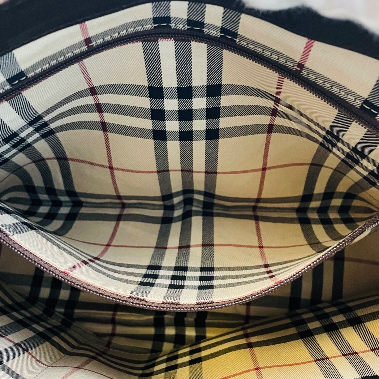 BURBERRY Shoulder Bag Purse Nova Check Leather Dark Brown Authentic