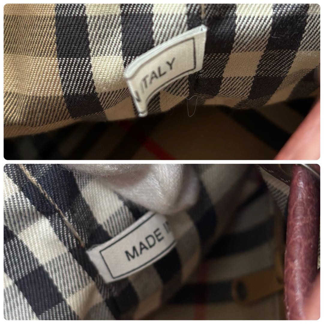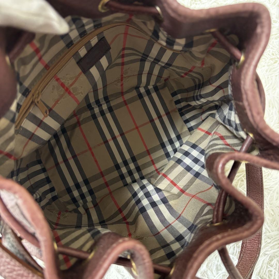 BURBERRY Shoulder Bag Purse Nova Check Leather Dark Brown Authentic