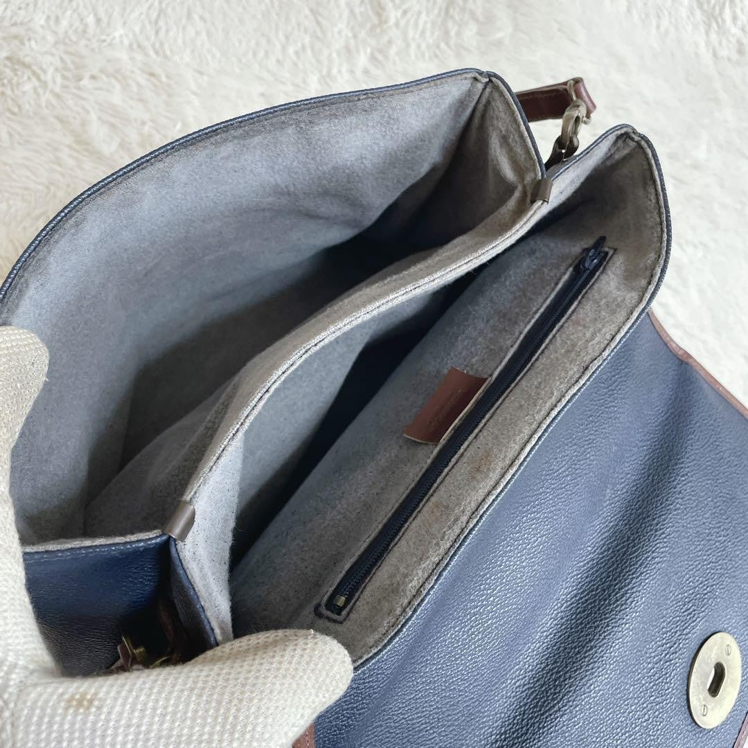 BURBERRY Shoulder Bag Purse Nova Check Leather Navy Brown Authentic