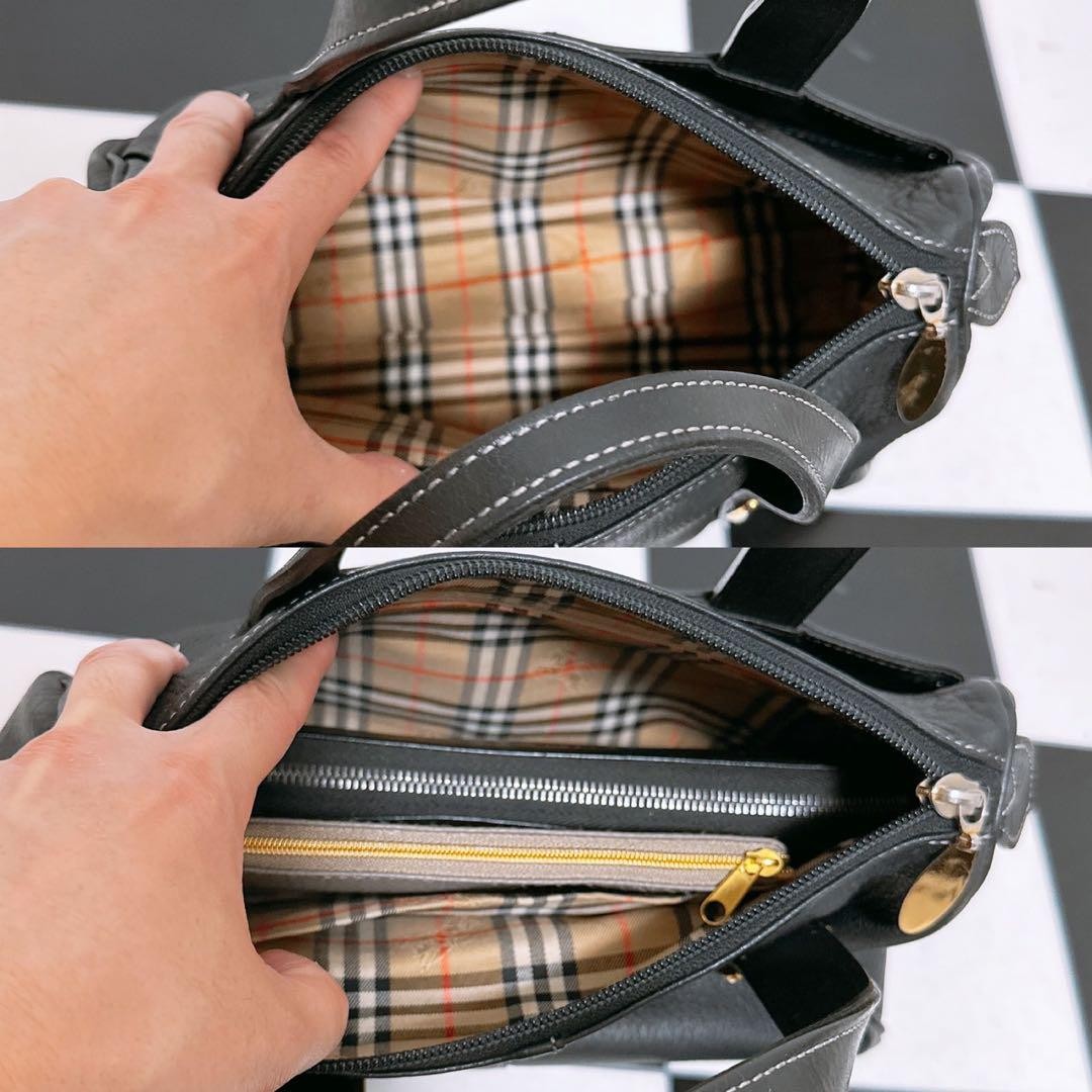 BURBERRYS Hand Bag Tote Purse Nova Check Leather Black Authentic