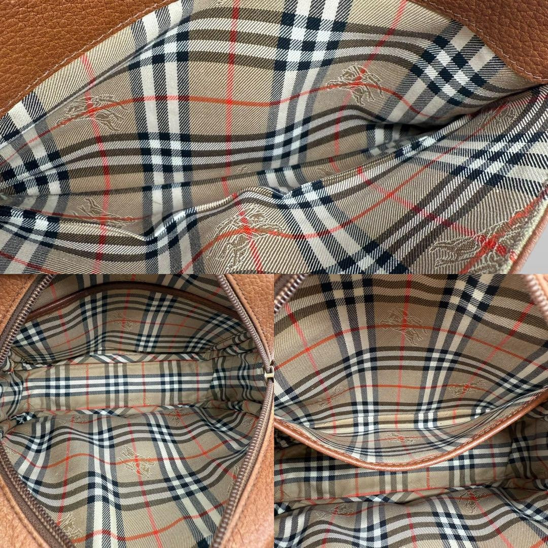 BURBERRYS Shoulder Bag Purse Nova Check Leather Brown Authentic
