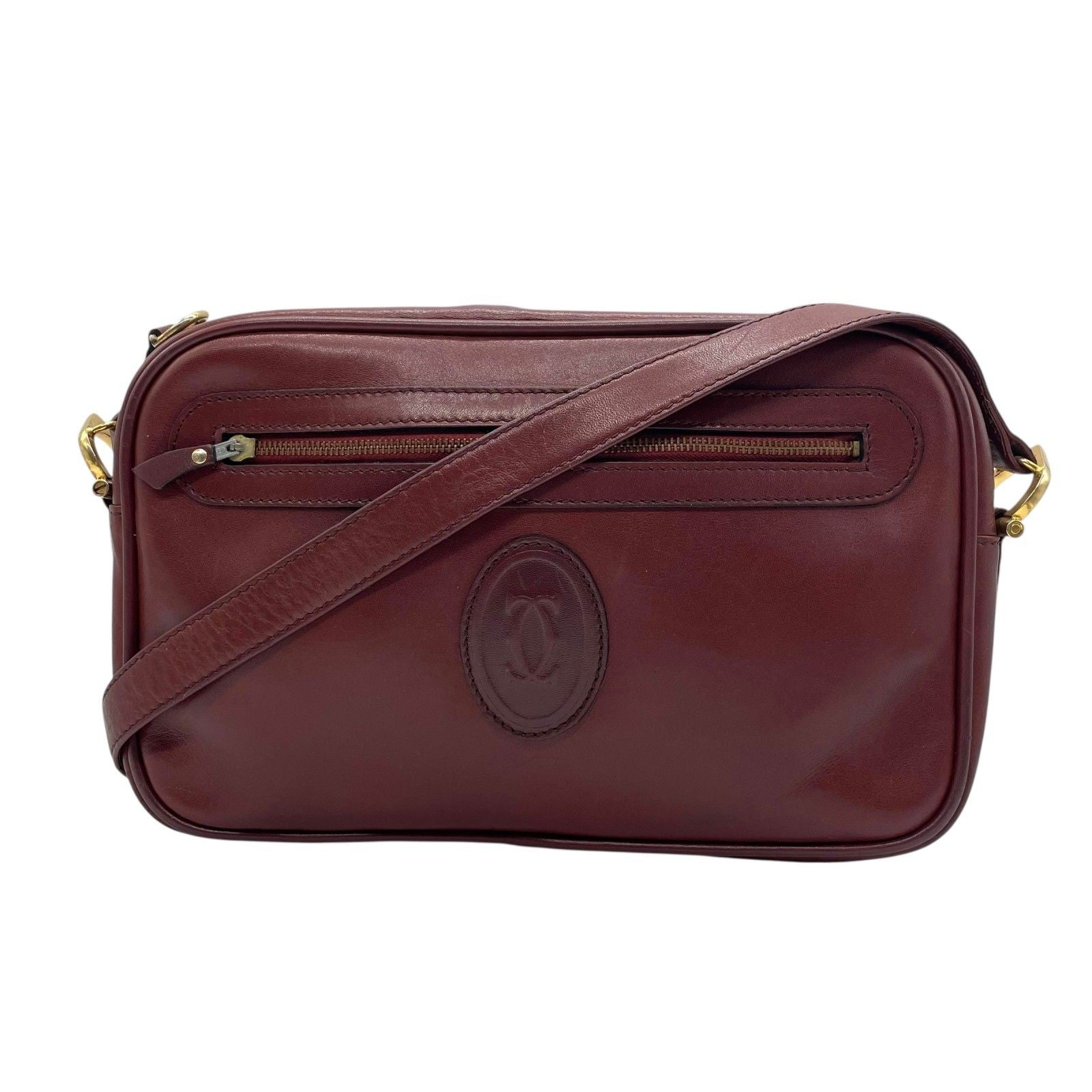 Cartier Shoulder Bag Purse Must Leather Wine Red Authentic