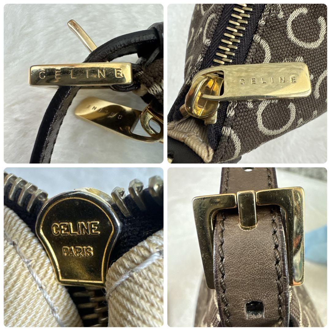 CELINE Accessory Pouch Hand Bag Tote Purse C Macadam Canvas Dark Brown Authentic