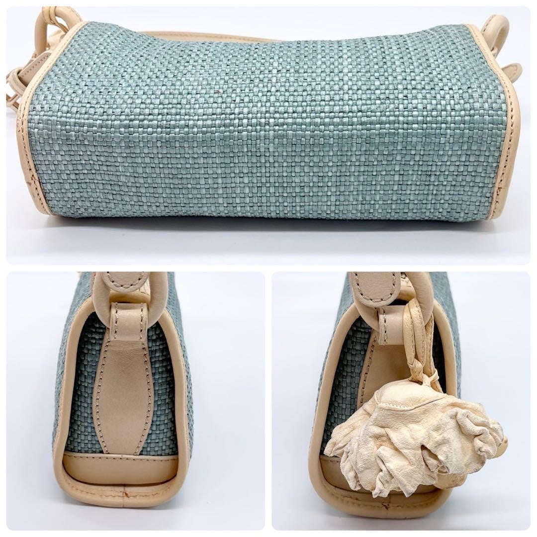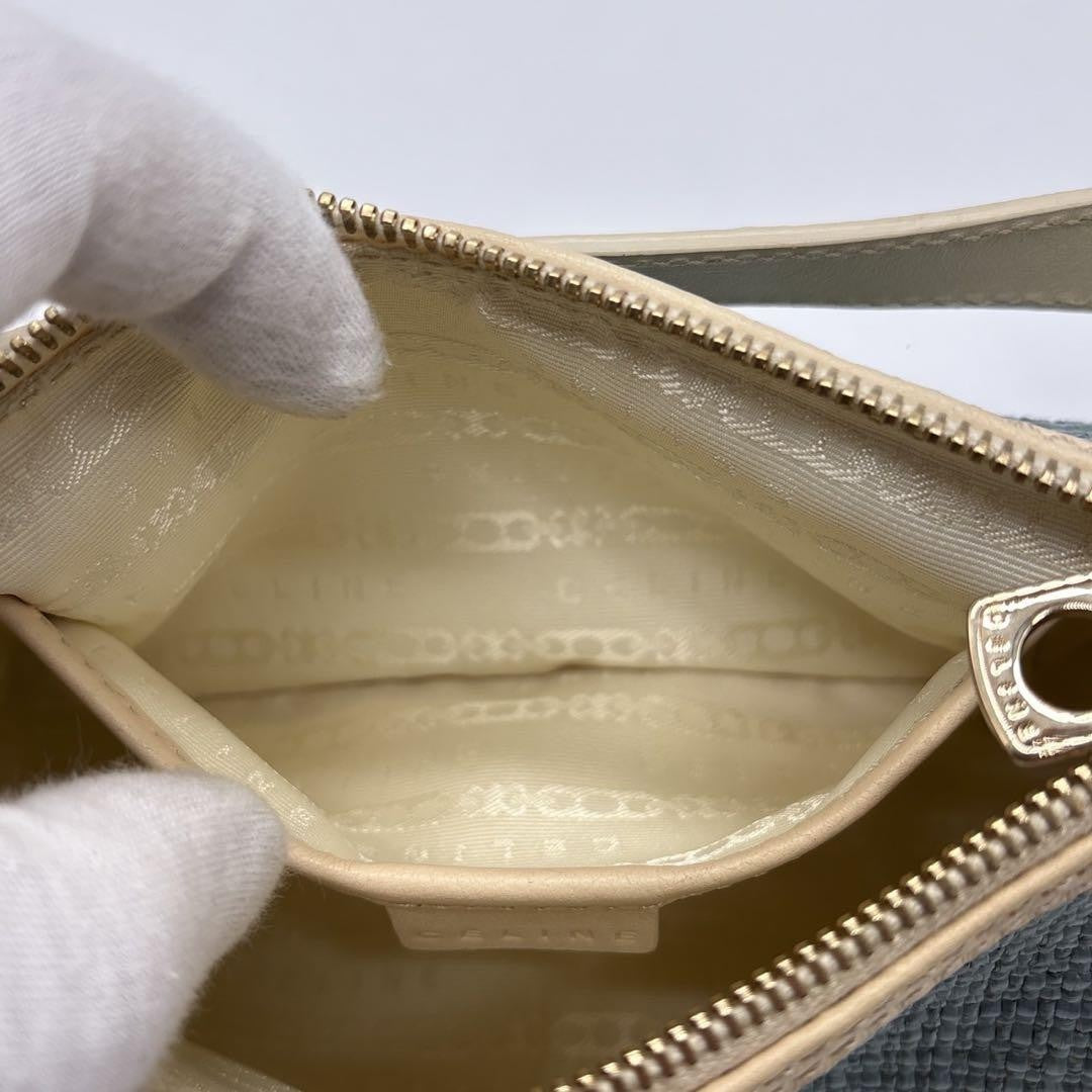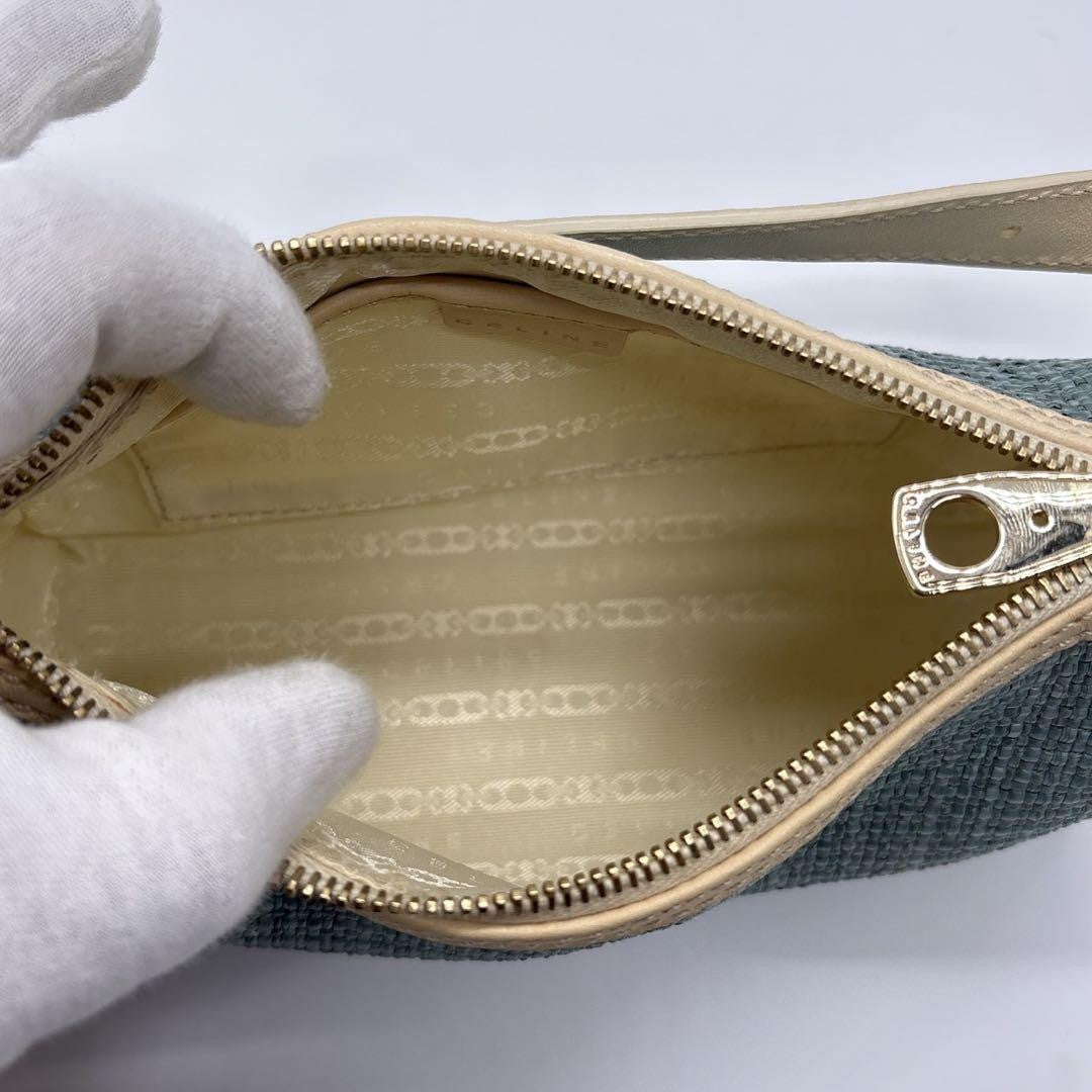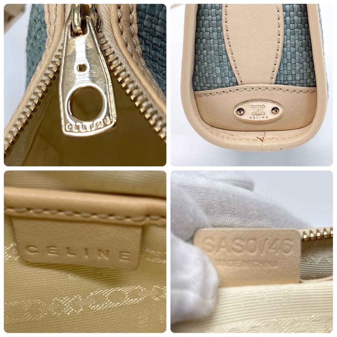 CELINE Accessory Pouch Hand Bag Tote Purse Leather Straw Blue Authentic
