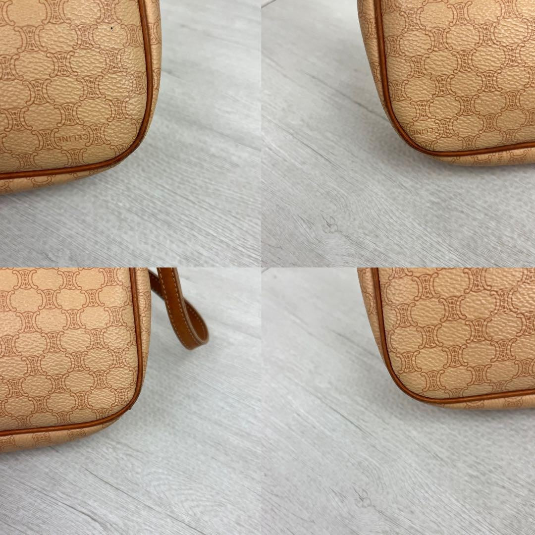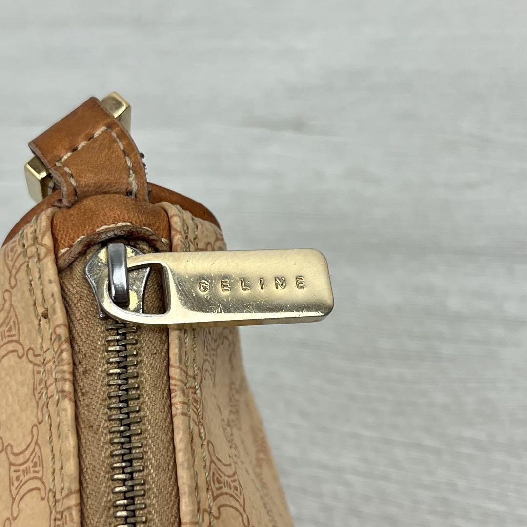 CELINE Accessory Pouch Hand Bag Tote Purse Macadam PVC Leather Beige Authentic