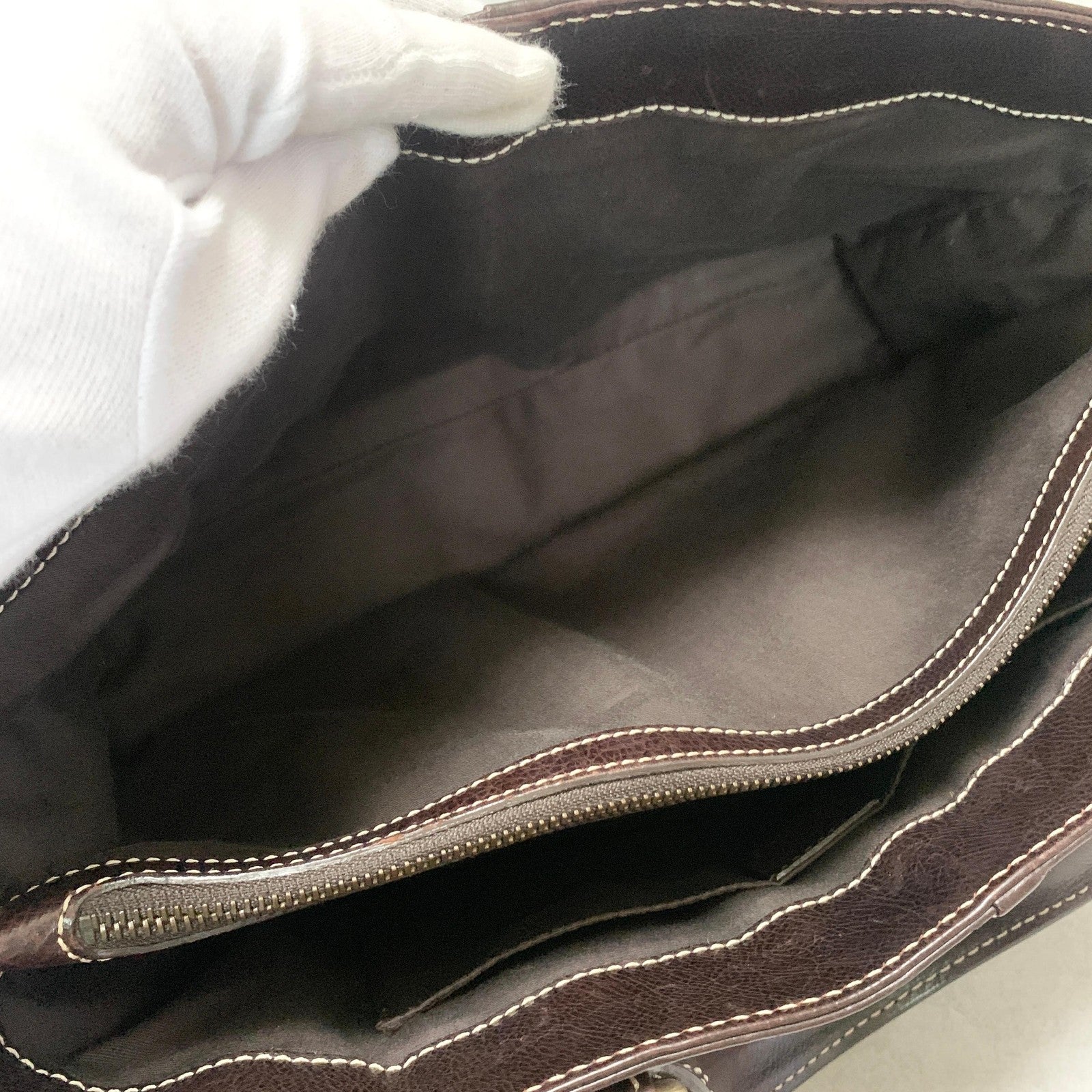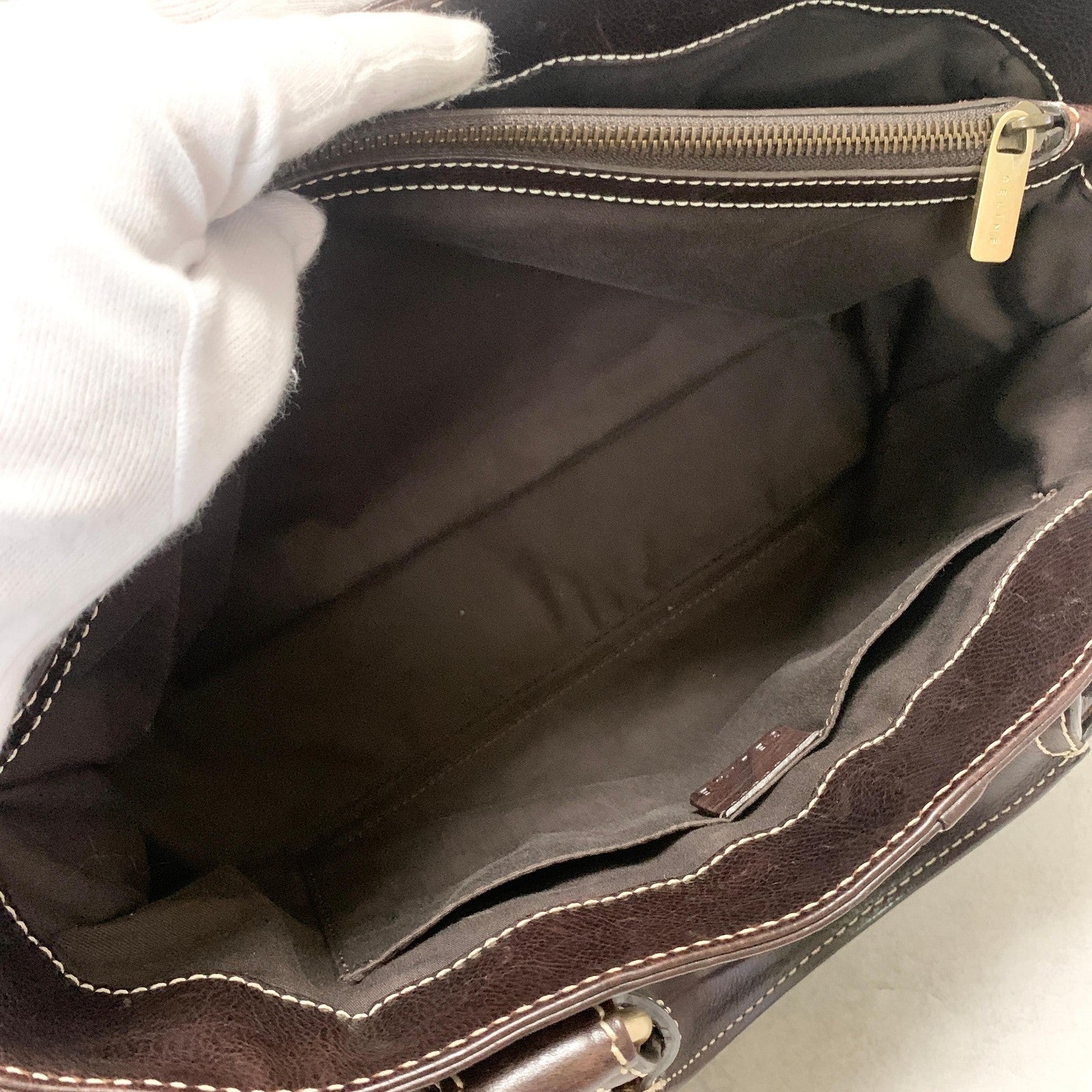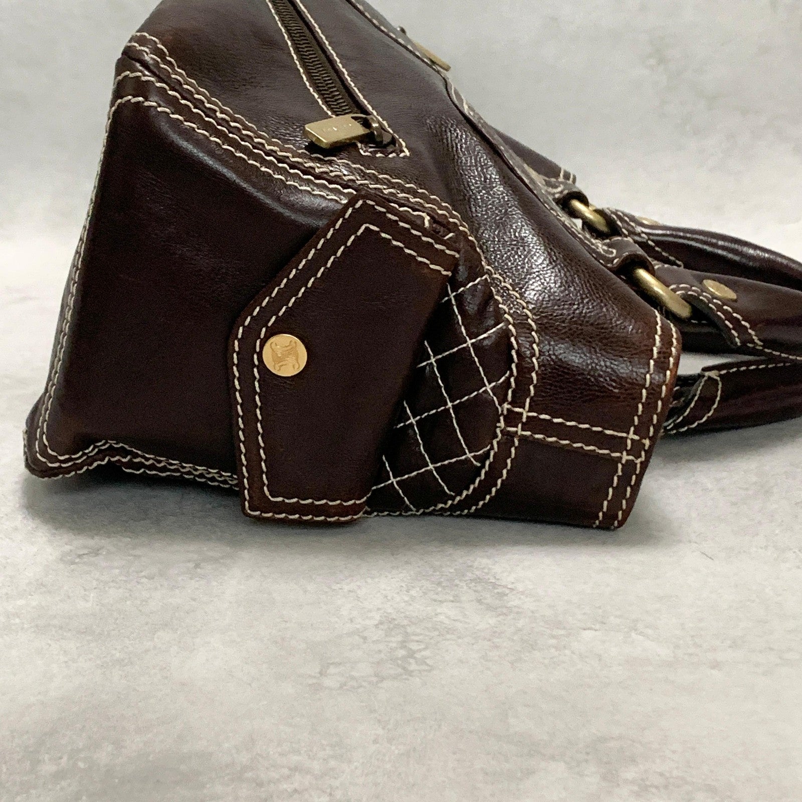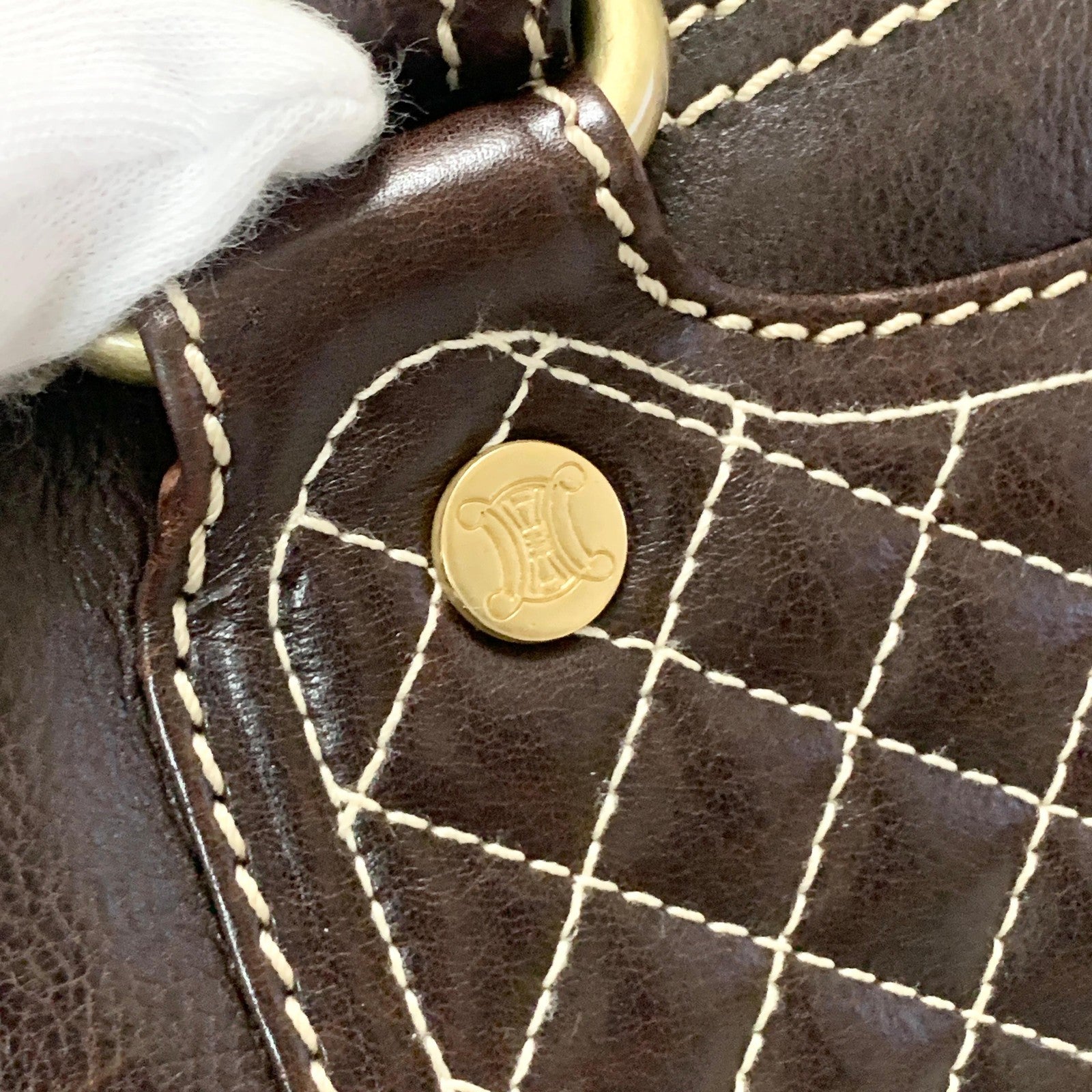 CELINE Boogie Bag Handbag Purse Leather Quilted Brown Gold Used Authentic