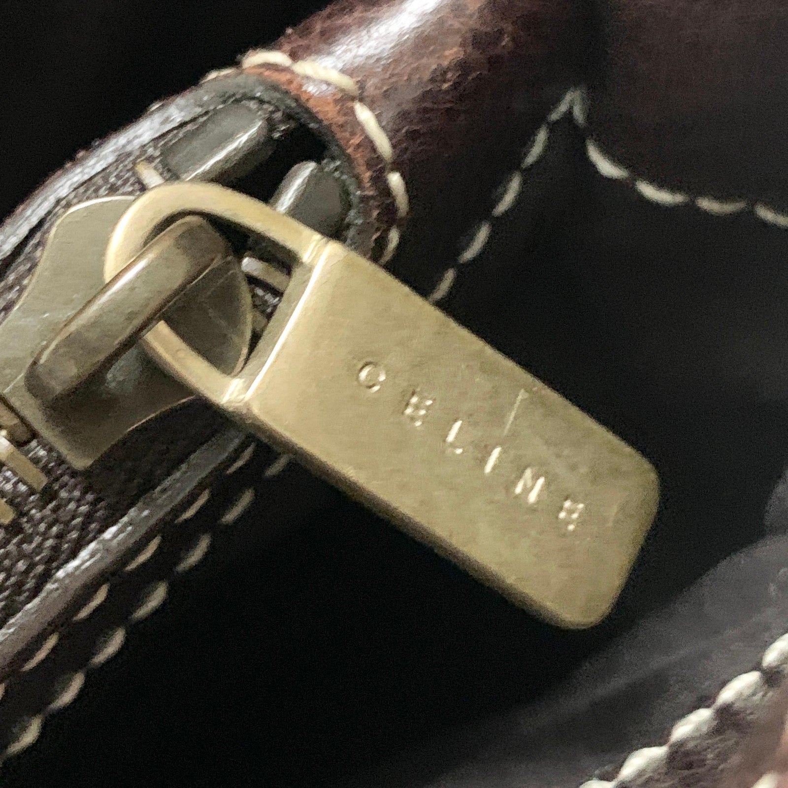 CELINE Boogie Bag Handbag Quilted Purse Leather Brown Gold Women's Used Auth