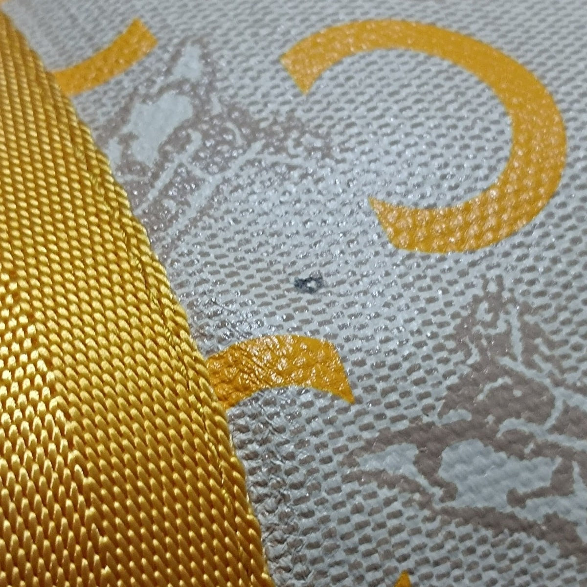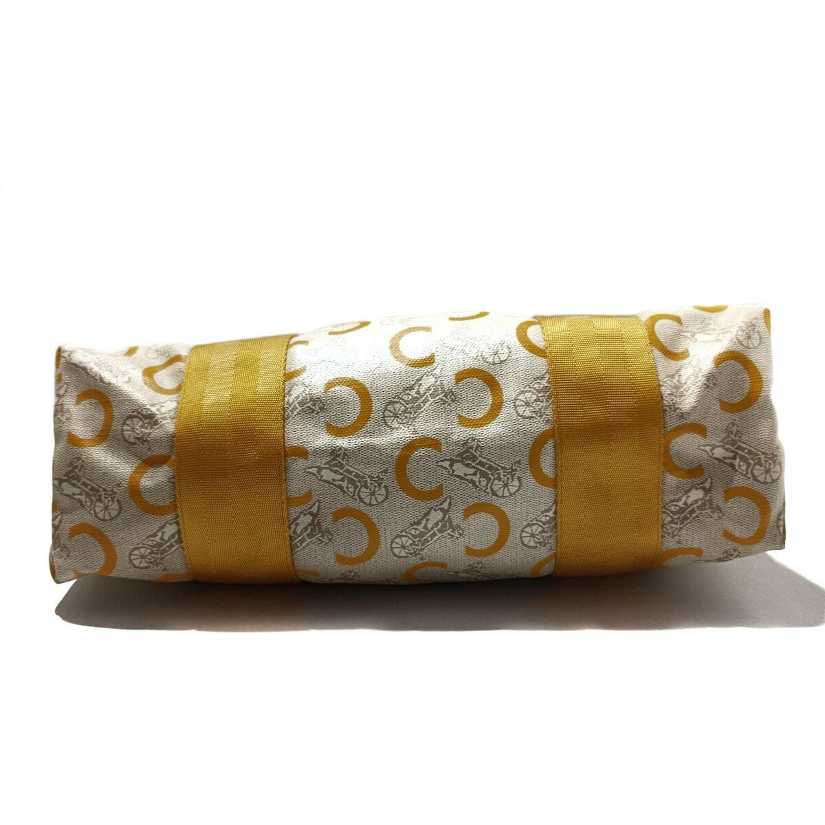CELINE Hand Bag Purse C Macadam PVC Nylon Leather Gray Beige Dark Yellow Ivory