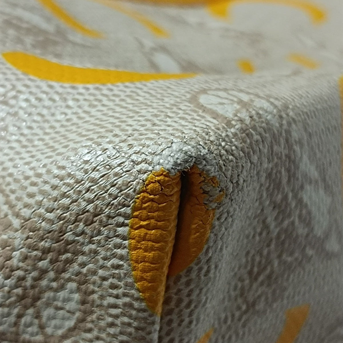 - Bottom: Noticeable scuffs on corners, slight tears