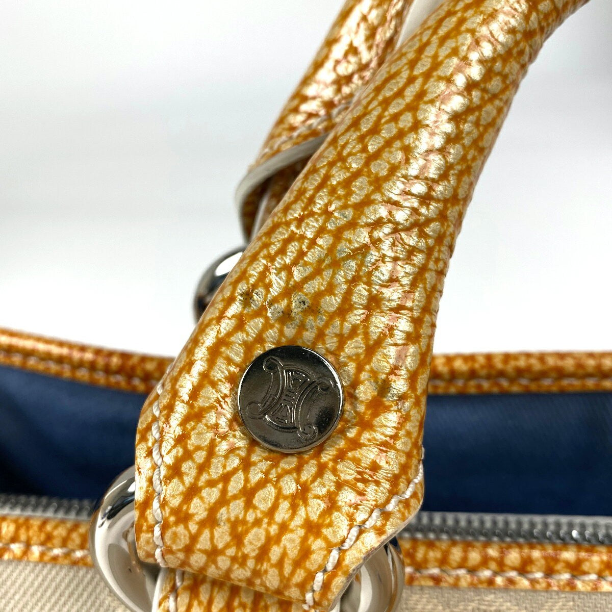 CELINE Hand Bag Tote Purse Boogie Macadam Canvas Leather Brown Ivory Authentic