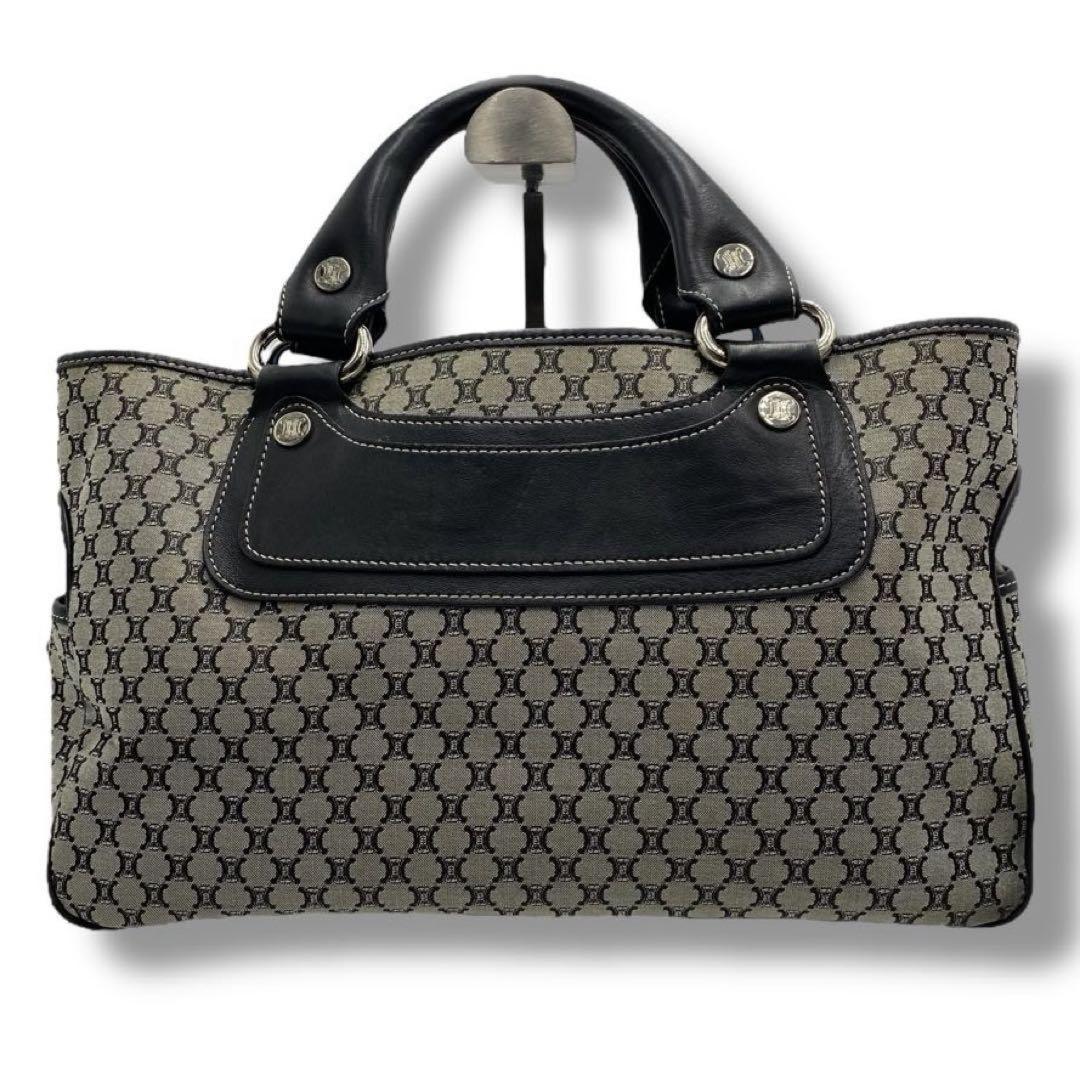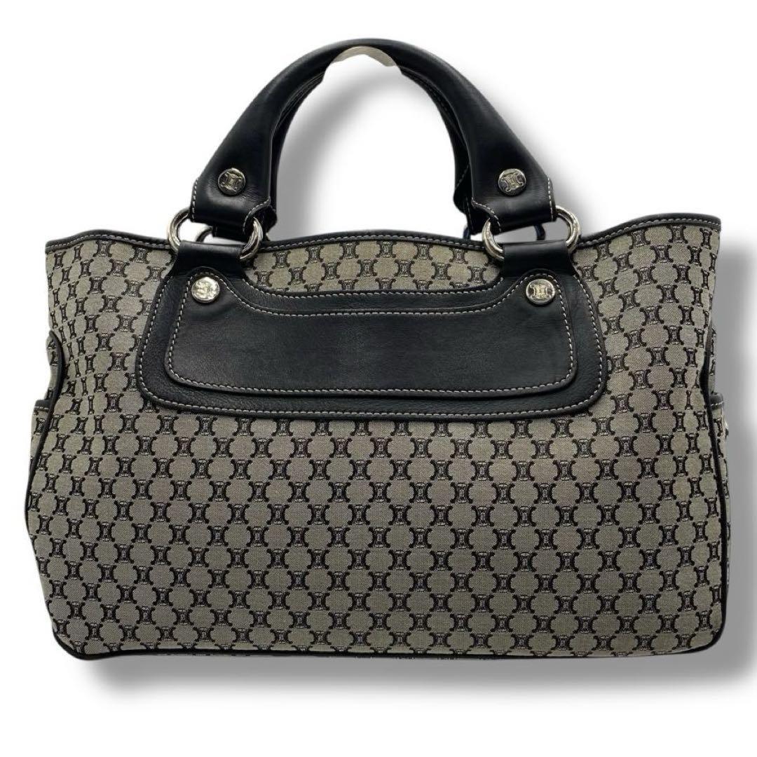 CELINE Hand Bag Tote Purse Boogie Macadam Nylon Canvas Leather Gray Authentic