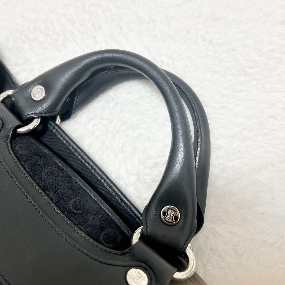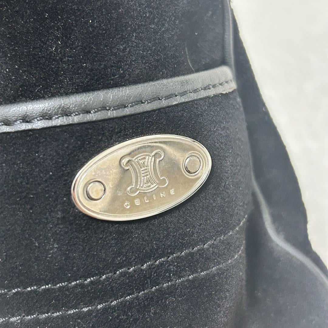 CELINE Hand Bag Tote Purse C Macadam Boogie Leather Suede Black Authentic