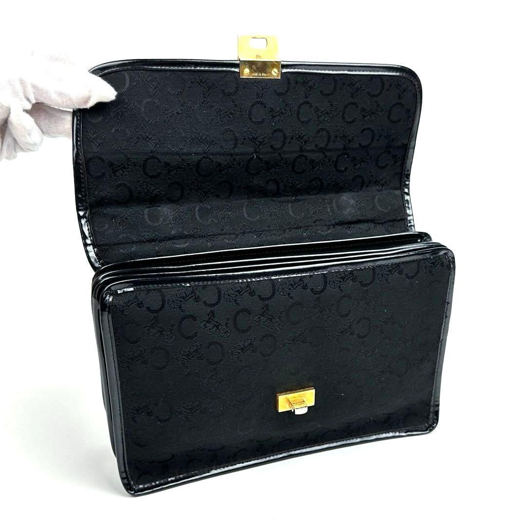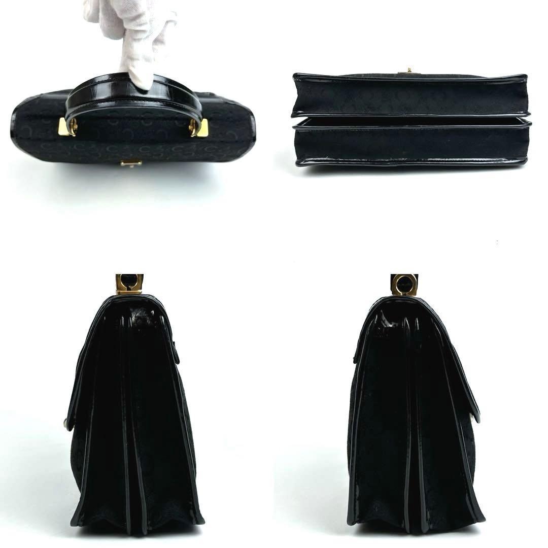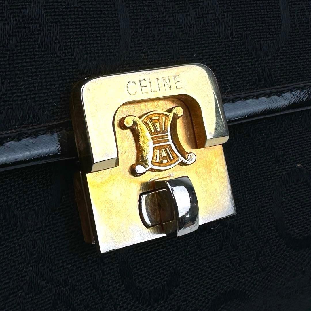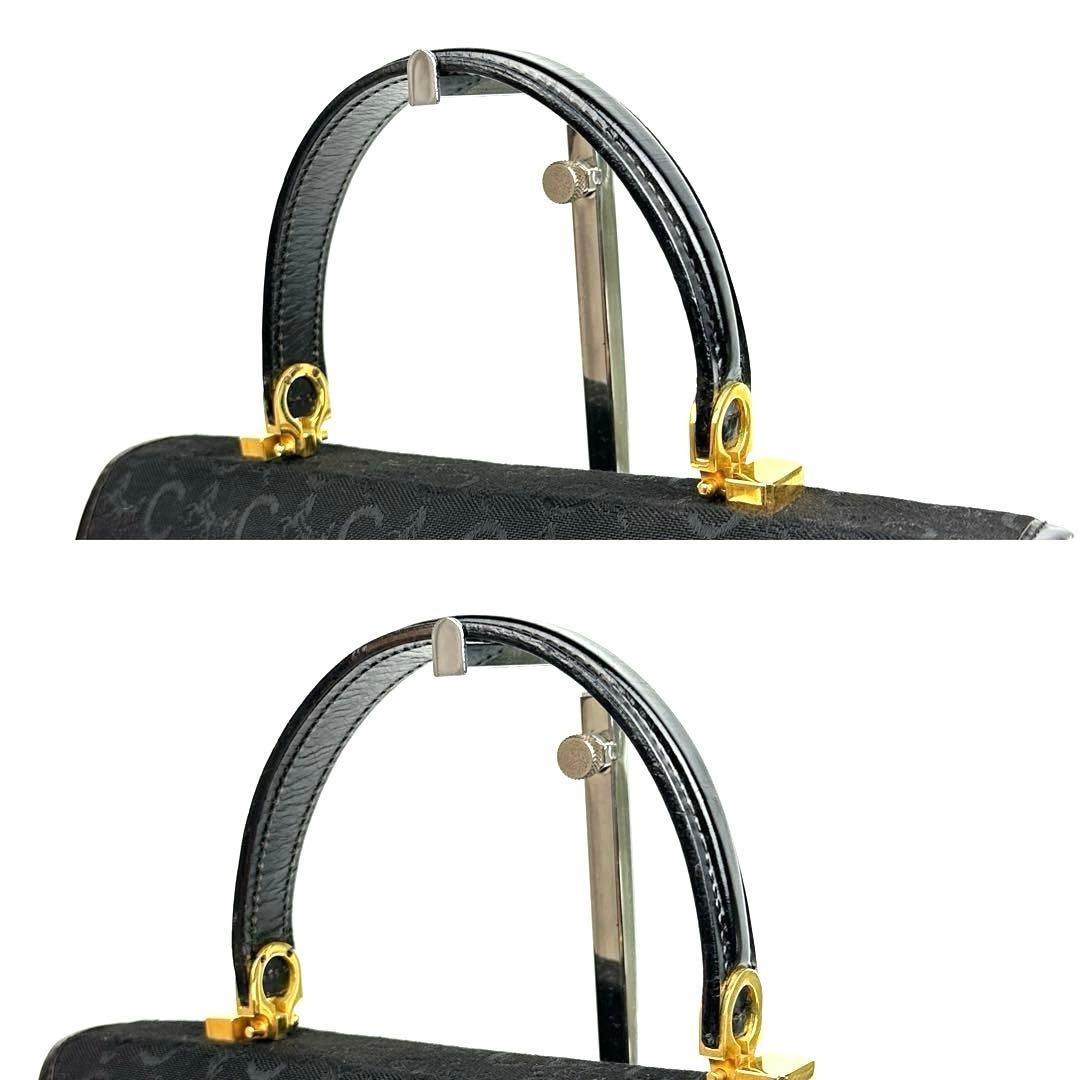 CELINE Hand Bag Tote Purse C Macadam Canvas Leather Black Authentic