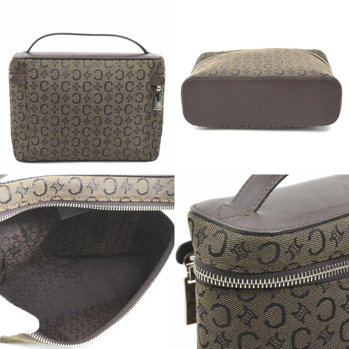 CELINE Hand Bag Tote Purse C Macadam Canvas Leather Dark Brown Authentic