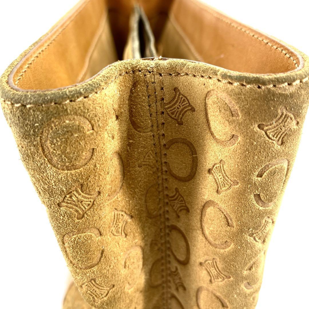 CELINE Hand Bag Tote Purse C Macadam Suede Leather Beige Authentic