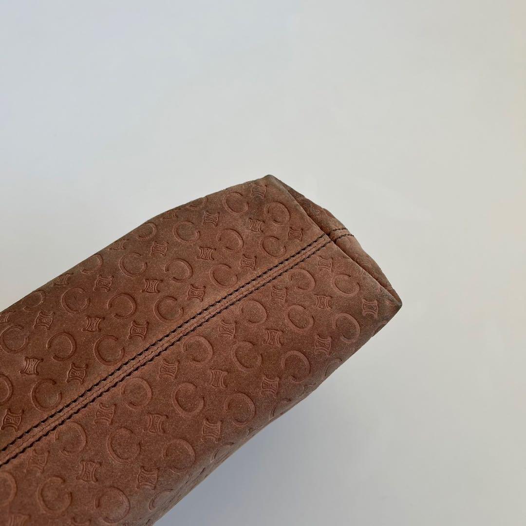 CELINE Hand Bag Tote Purse C Macadam Suede Leather Brown Authentic