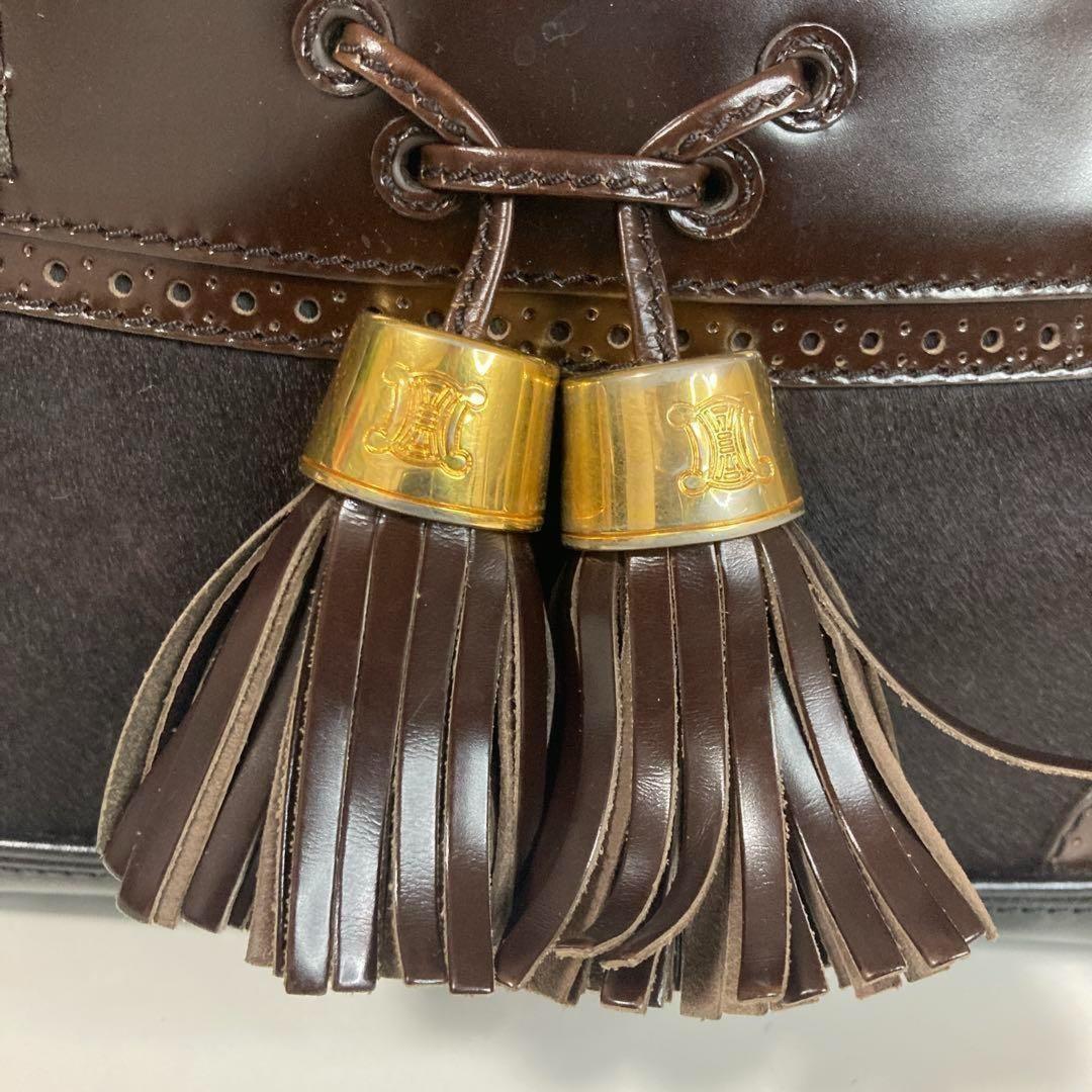 CELINE Hand Bag Tote Purse Leather Dark Brown Authentic
