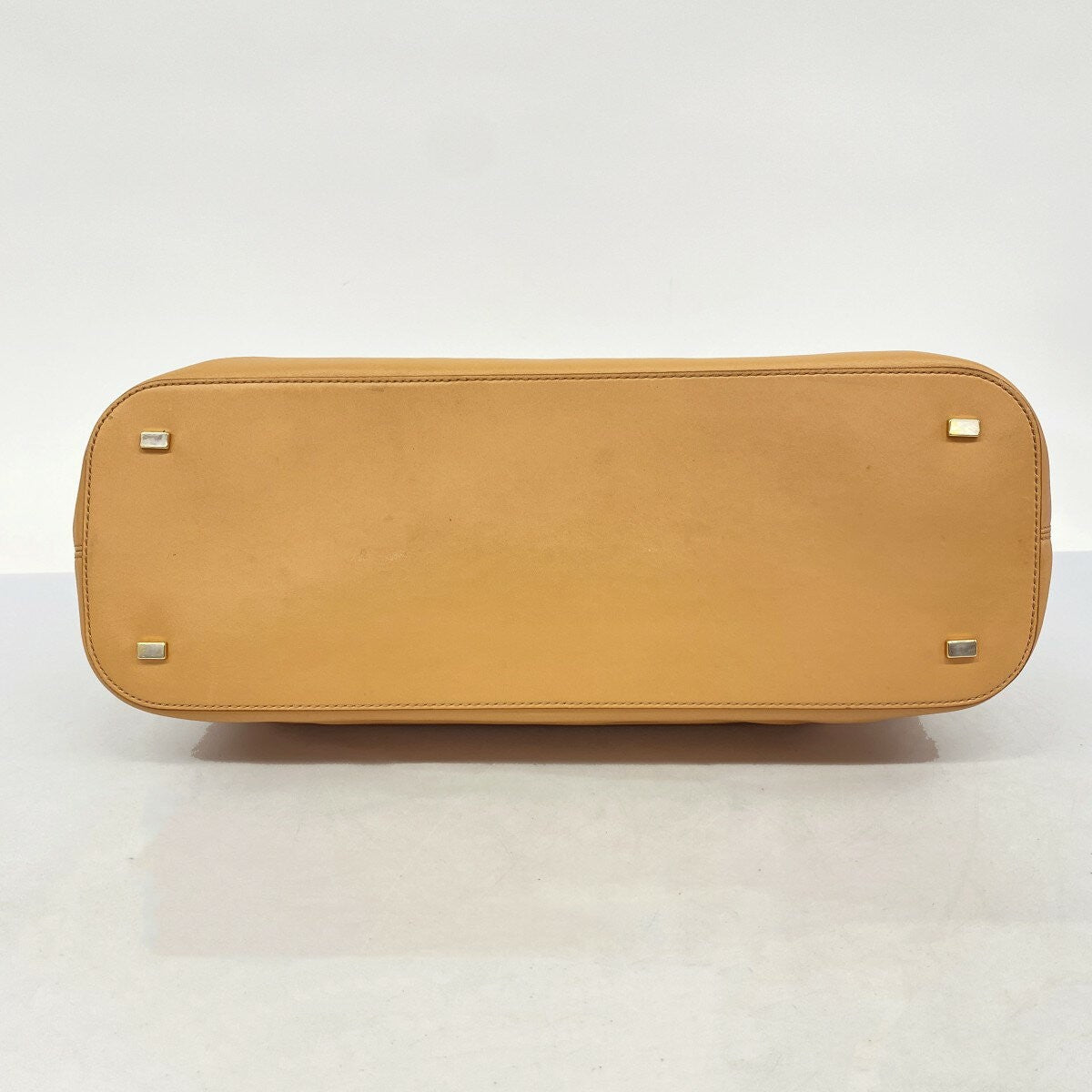 CELINE Hand Bag Tote Purse Leather Orange Beige Authentic