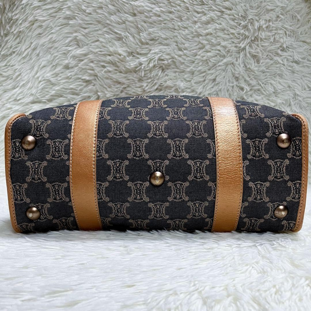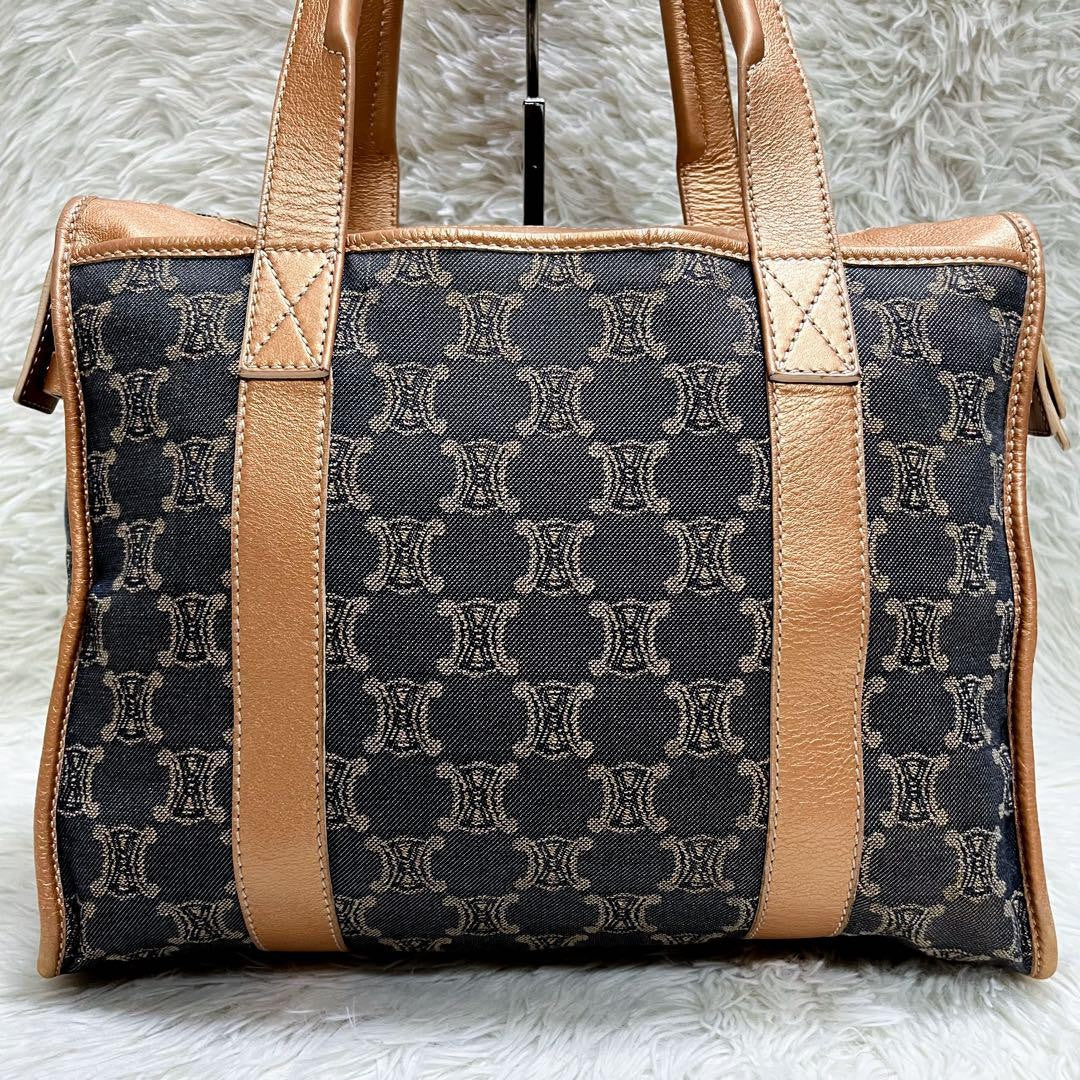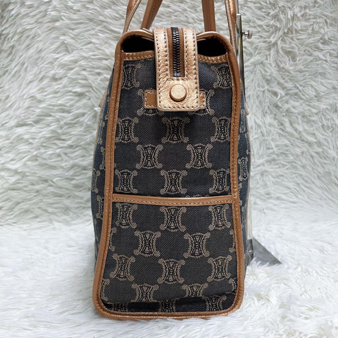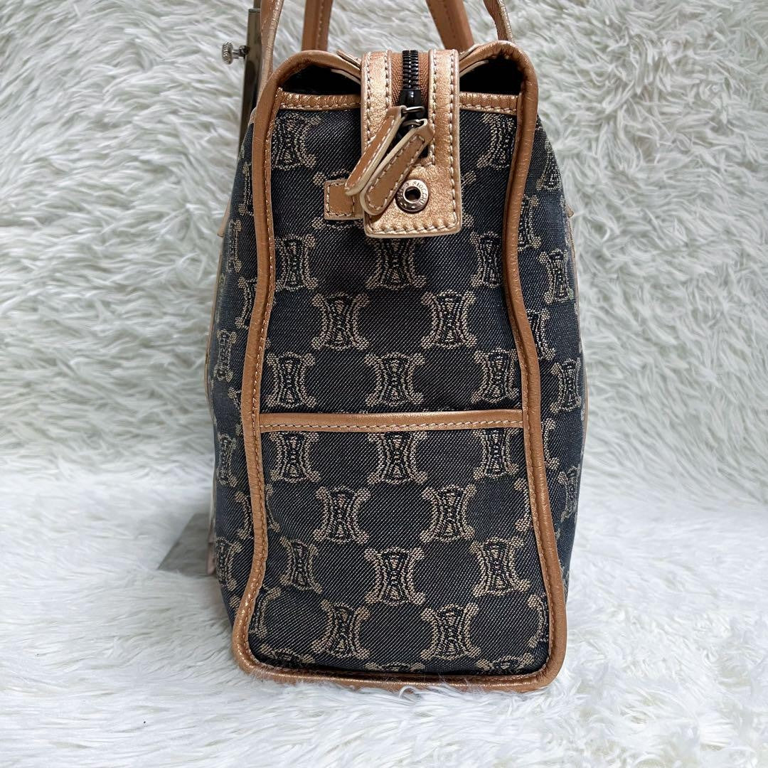 CELINE Hand Bag Tote Purse Macadam Canvas Leather Indigo Pink Gold Authentic