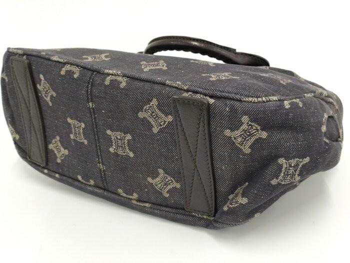 CELINE Hand Bag Tote Purse Macadam Denim Black Authentic