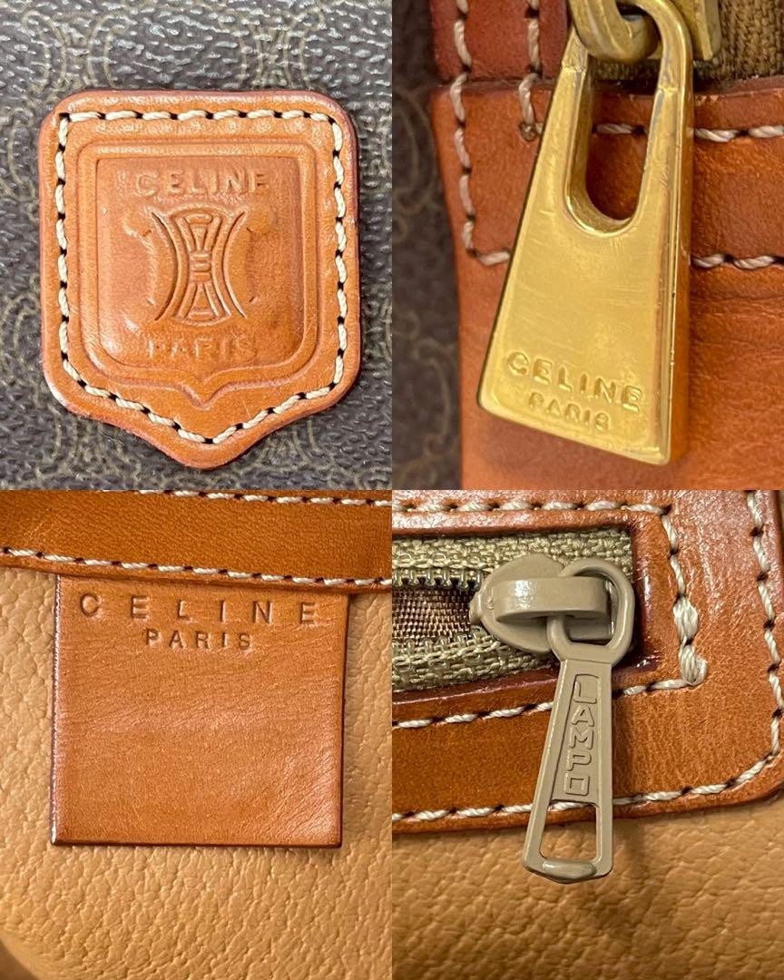 CELINE Hand Bag Tote Purse Macadam Leather PVC Brown Authentic