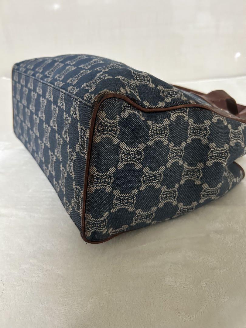 CELINE Hand Bag Tote Purse Macadam Navy Brown Authentic