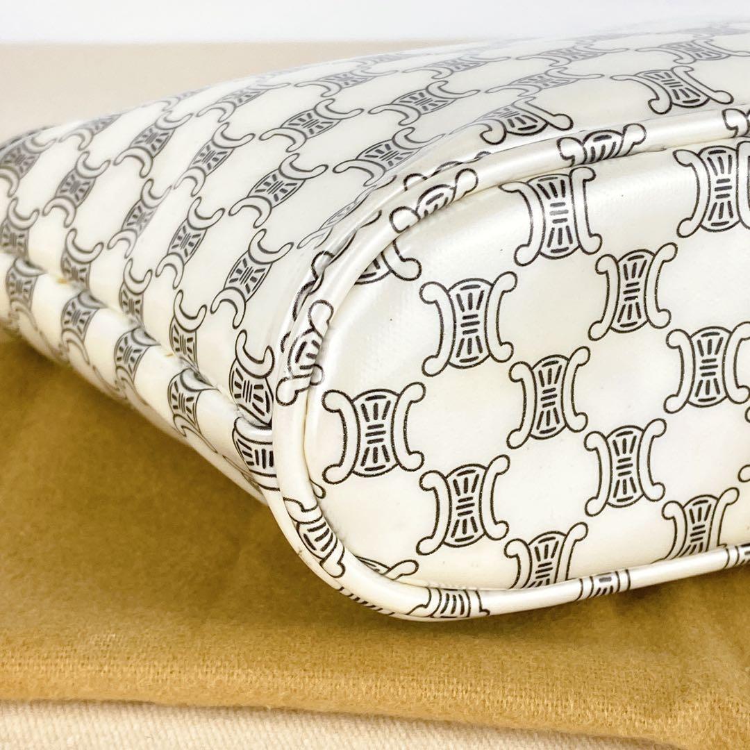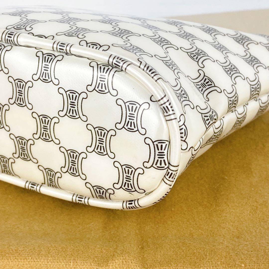 CELINE Hand Bag Tote Purse Macadam Patent Leather White Authentic