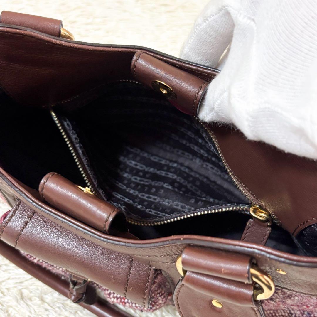 CELINE Hand Bag Tote Purse Tweed Leather Bordeaux Brown Authentic