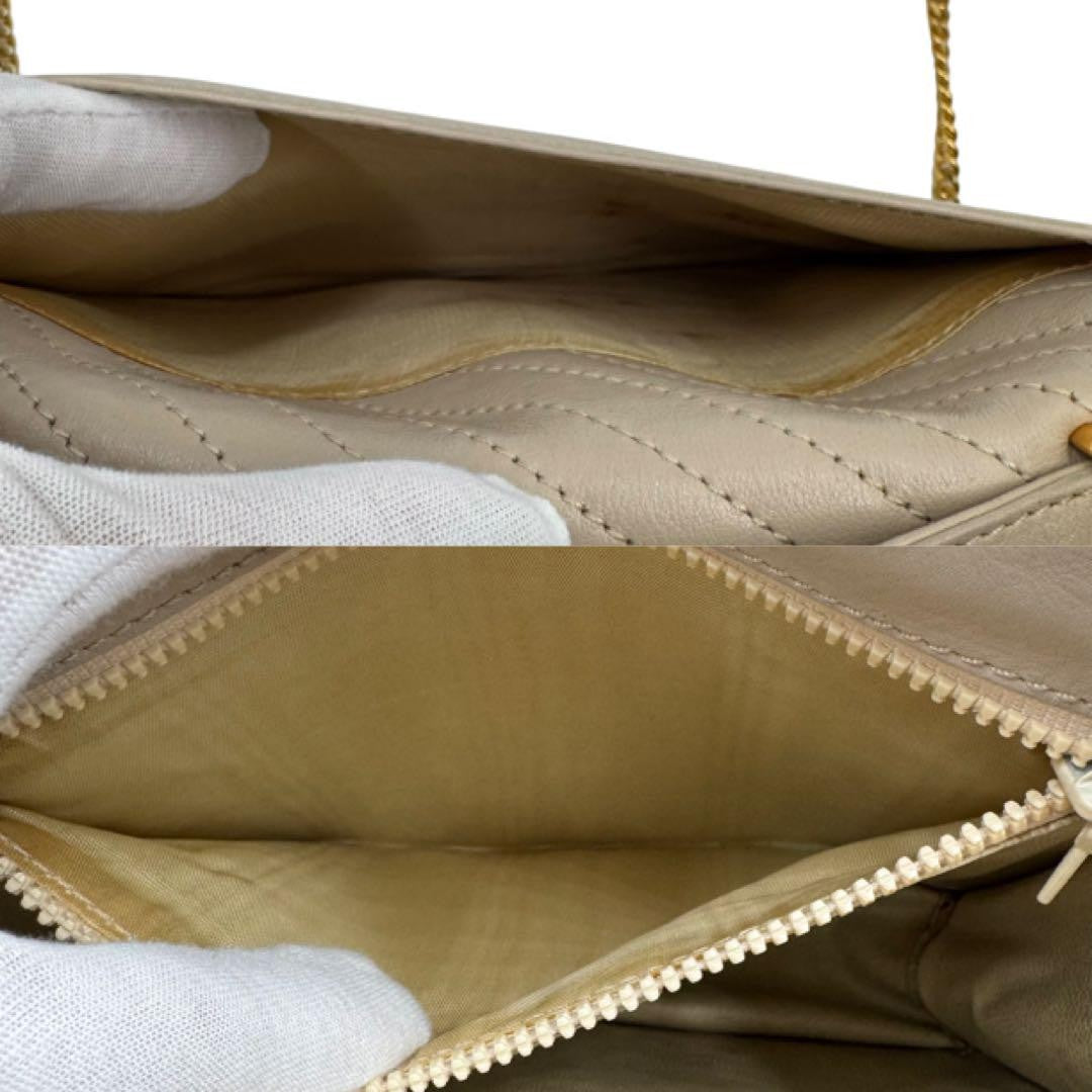 CELINE Hand Shoulder Bag Tote Purse 2way Chain Leather Beige Authentic